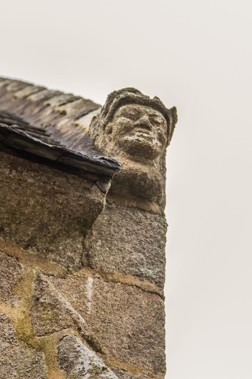 Détail d'un visage sculpté sur une crossette de pignon, transept sud, Eglise Saint-Jean de Keraudy (Ploumilliau)Immatriculation