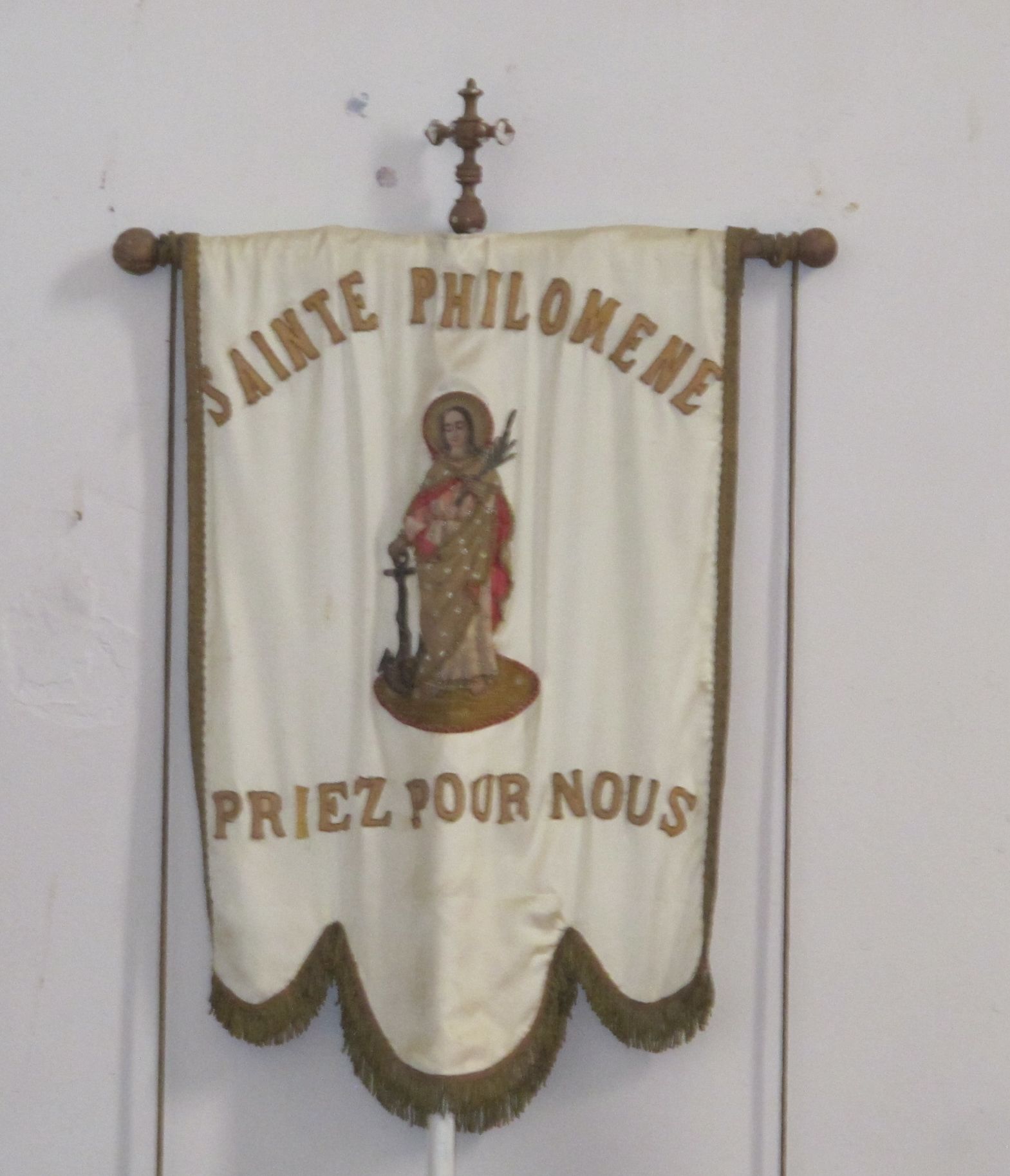 Bannière de procession : Sainte Philomène Priez pour nousImmatriculation
