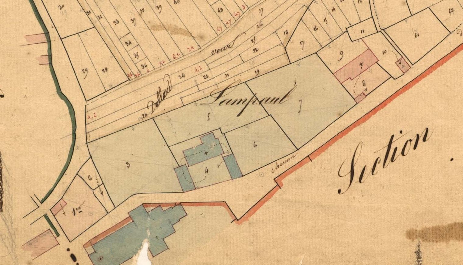 Cadastre de 1842, section E, feuille 1 (extrait)Immatriculation