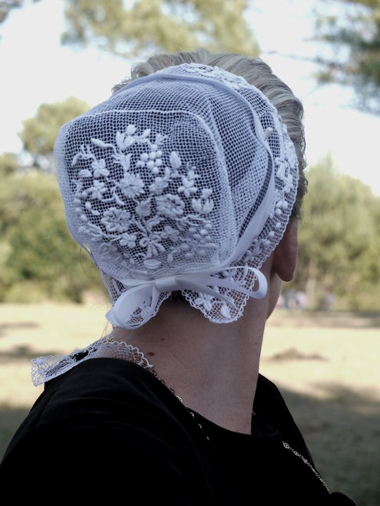 Coiffe portée par un membre du cercle celtique de Beuzec Cap Sizun (29) Photo transmise par Gwendal Jacob.Immatriculation