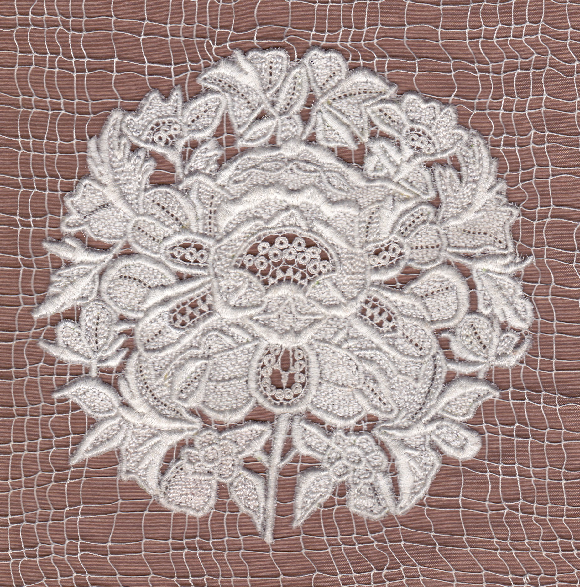 Collectage Ijin ha Spered ar Vro. Sparlennen avec fond en broderie plumetis de réalisation récente. Les jours travaillés sans fils tirés ont nécessité l'apposition d'une pièce d'organdi sur le filet. Travail guidé par David Le Gac, brodeur professionnel.Immatriculation