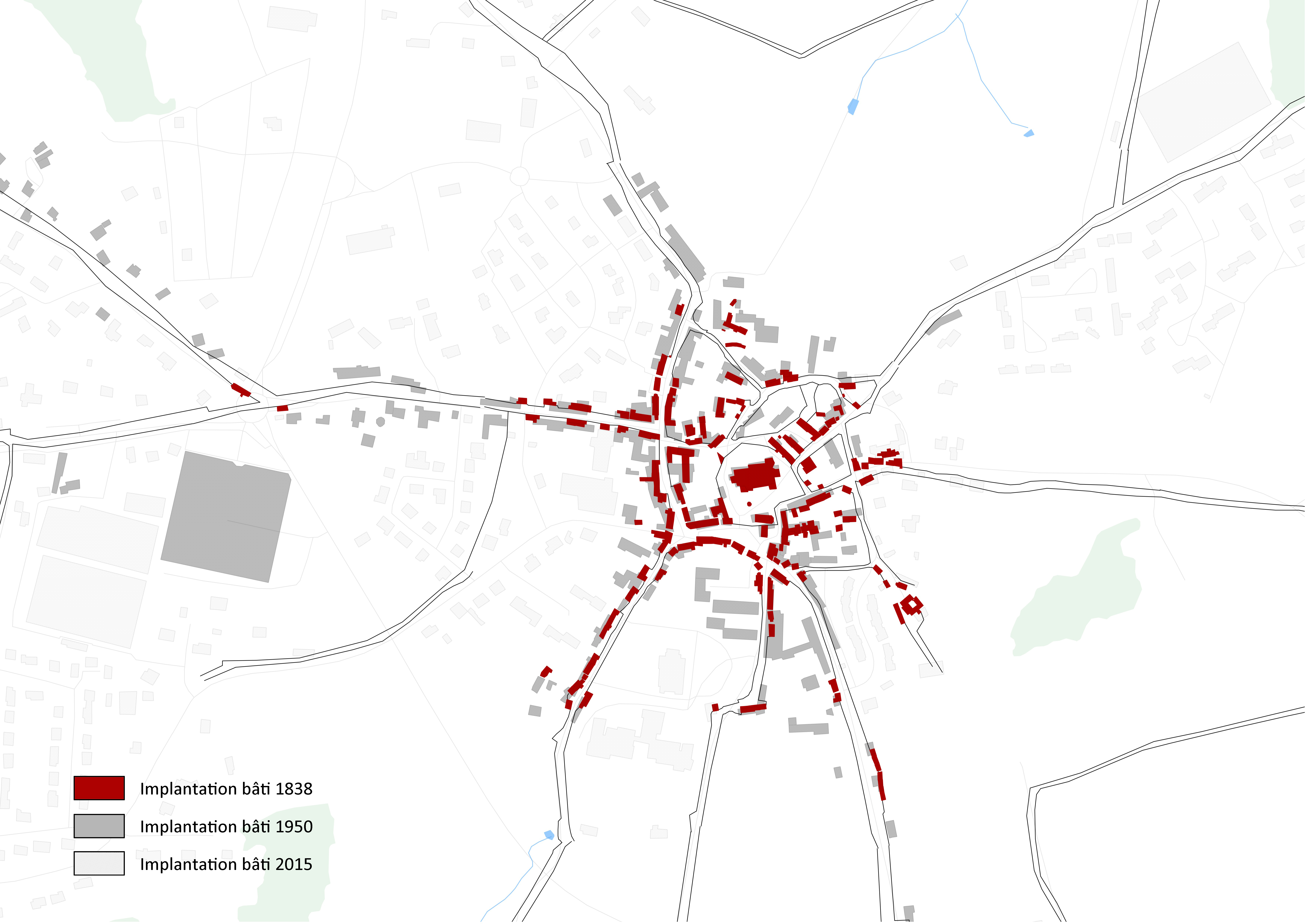 Carte de l'évolution de l'implantation du bâti du bourg de PlougonvenImmatriculation