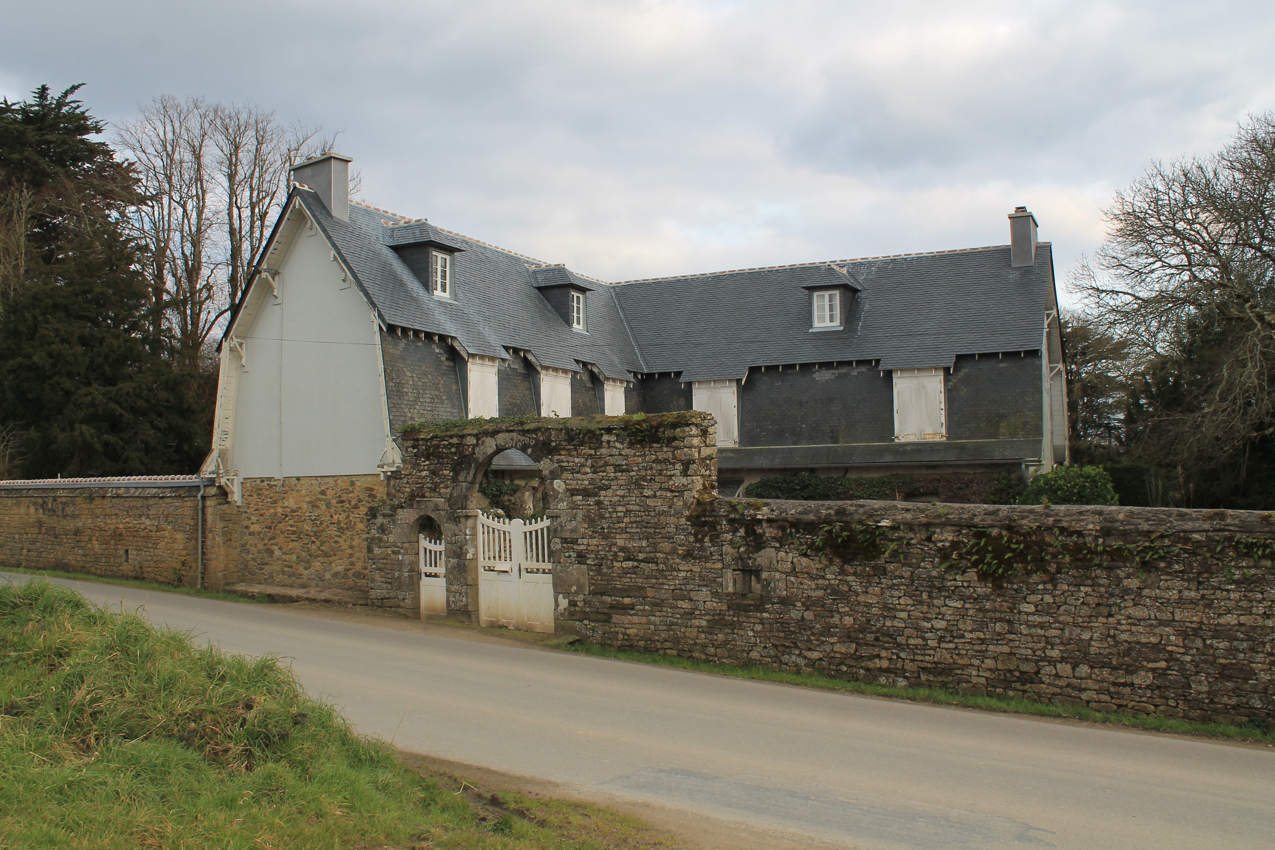 Daoulas, le Cras - Ancien manoir du Cras, reconstruit au début du 20e siècle, le porche à portes pietonne et charetière est daté 1701Immatriculation