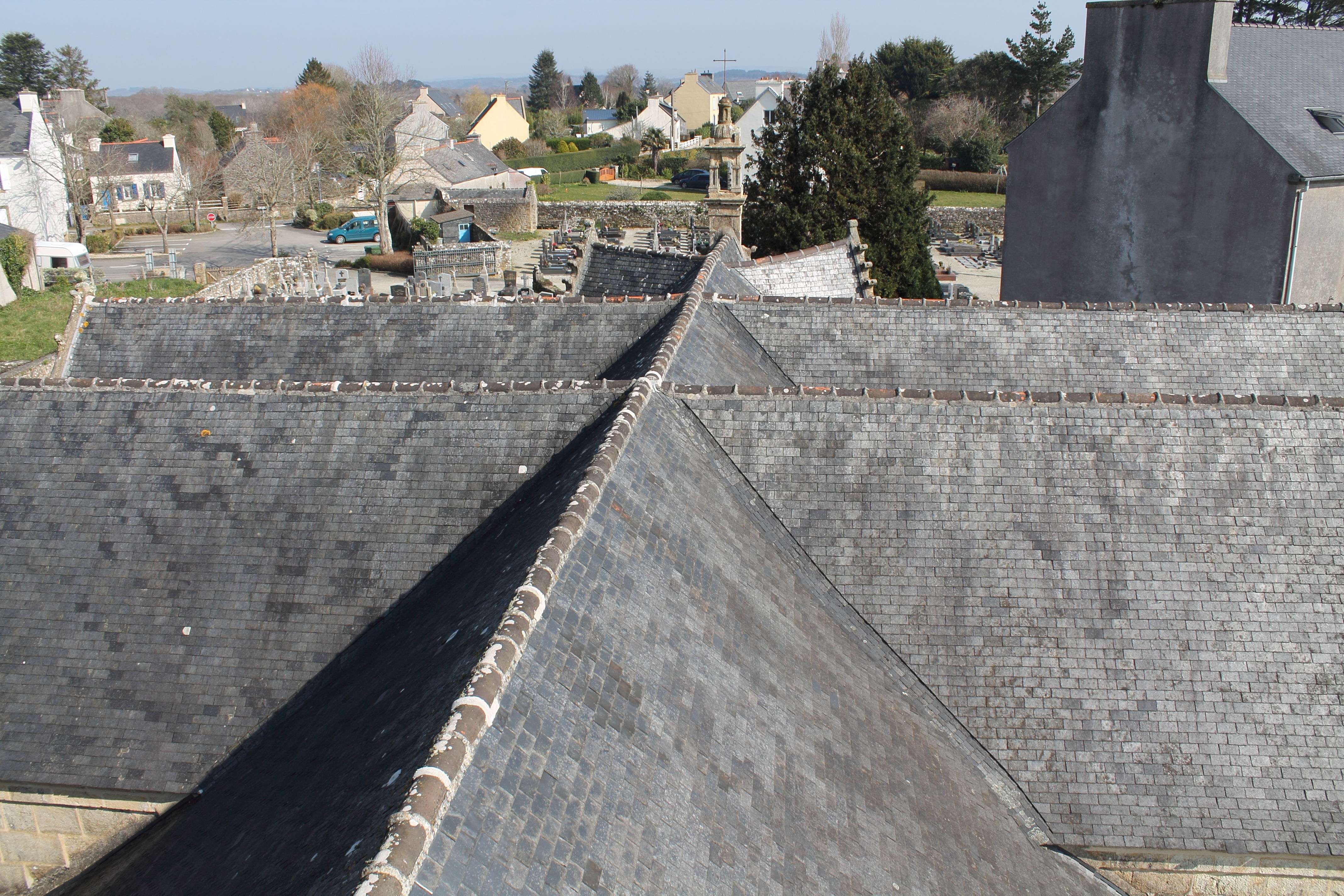 Logonna-Daoulas, église Saint-Nonna - vue du clocher, toiture de la nef, du double transept et du chevetImmatriculation