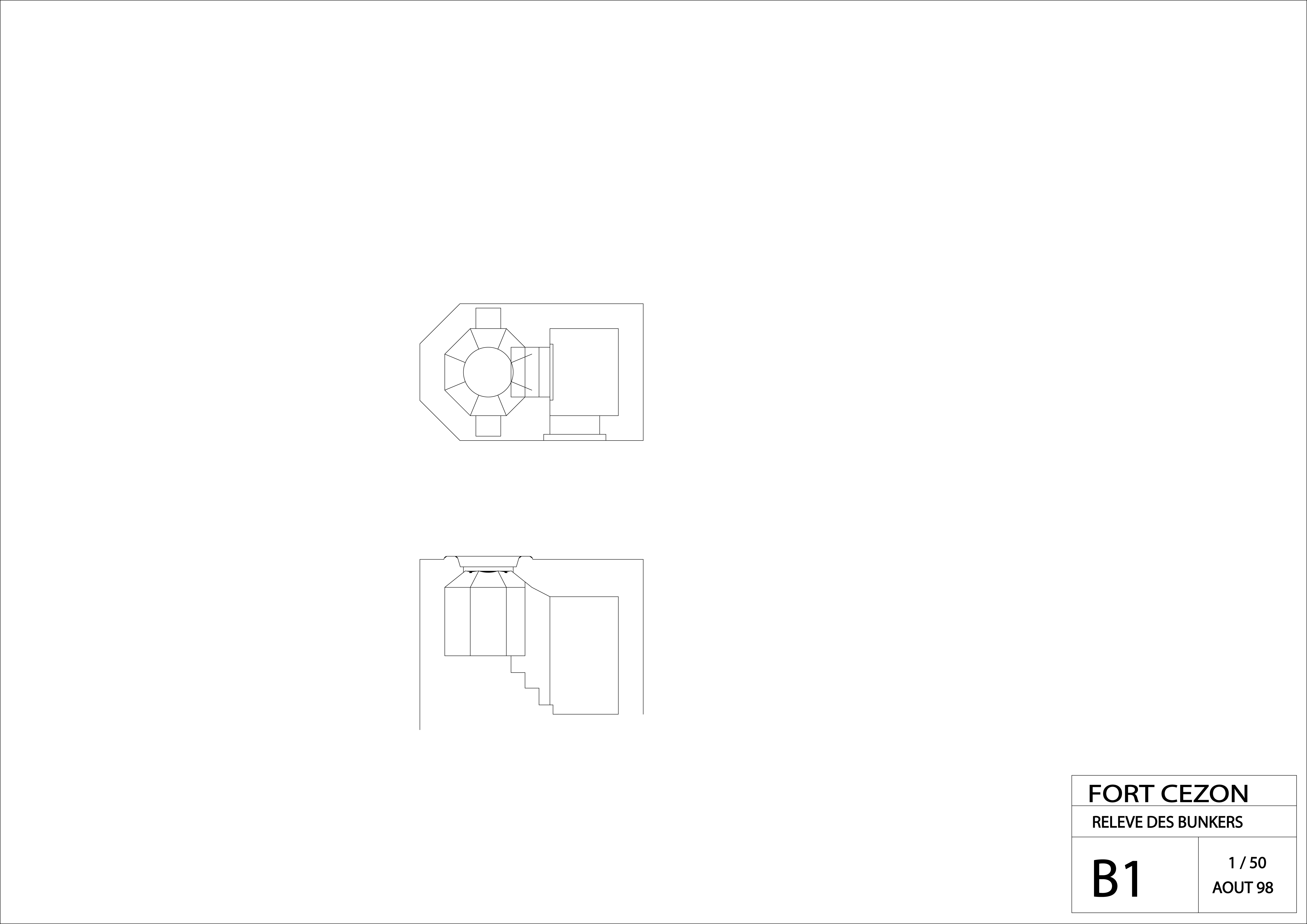 Landéda, île Cézon : plan et coupe de l'un des 6 postes d'observation dit Tobrouk du fort Cézon (relevé : Association Cézon, août 1998)Immatriculation