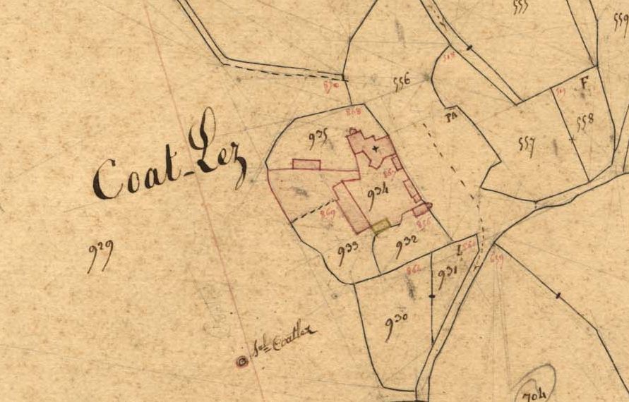 Le manoir de Coat Lez sur le cadastre de 1836 (A. D. du Finistère, 3 P 287/9)Immatriculation