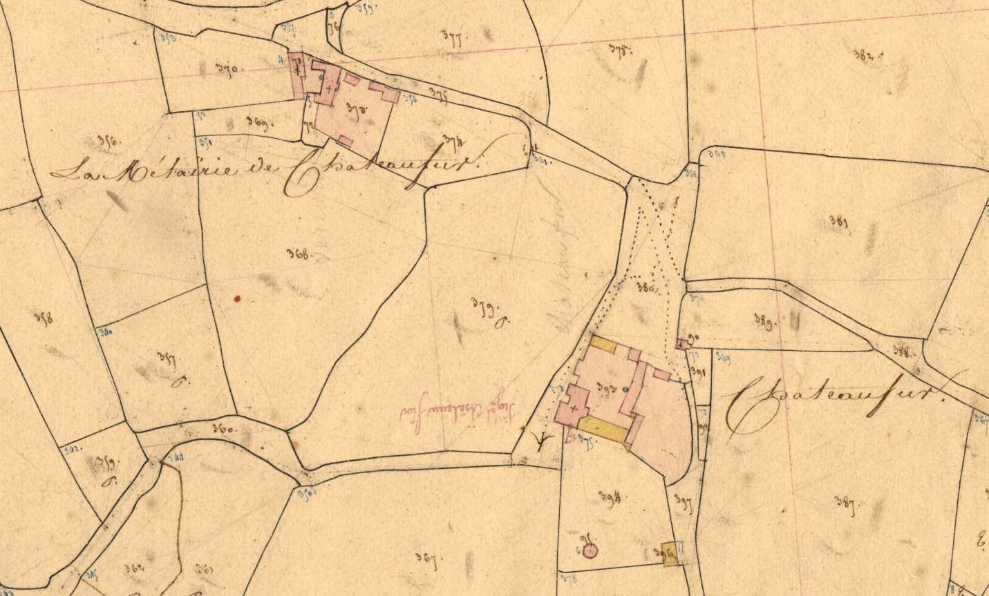 Le manoir et la métairie de Châteaufur sur le cadastre de 1837 (A. D. du Finistère, 3 P 207/13)Immatriculation