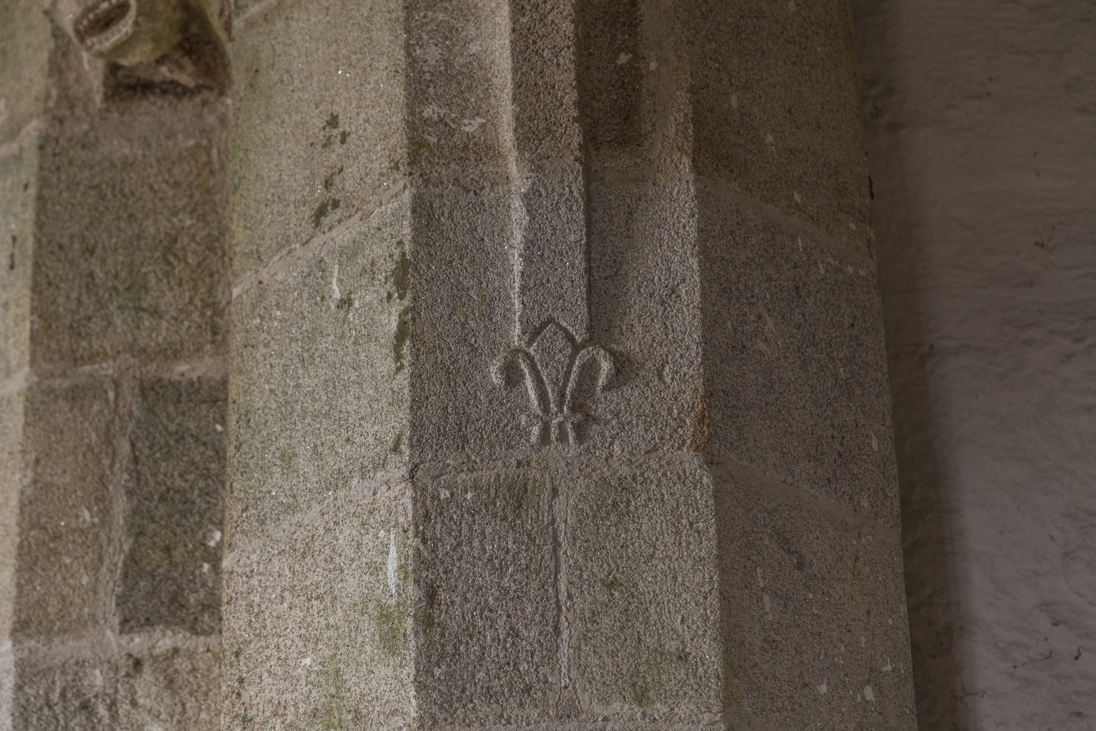 Chapelle Saint-Jean-Botlan, Edern - Fleur de lys au départ de la nervure centrale de l'arc triomphalImmatriculation
