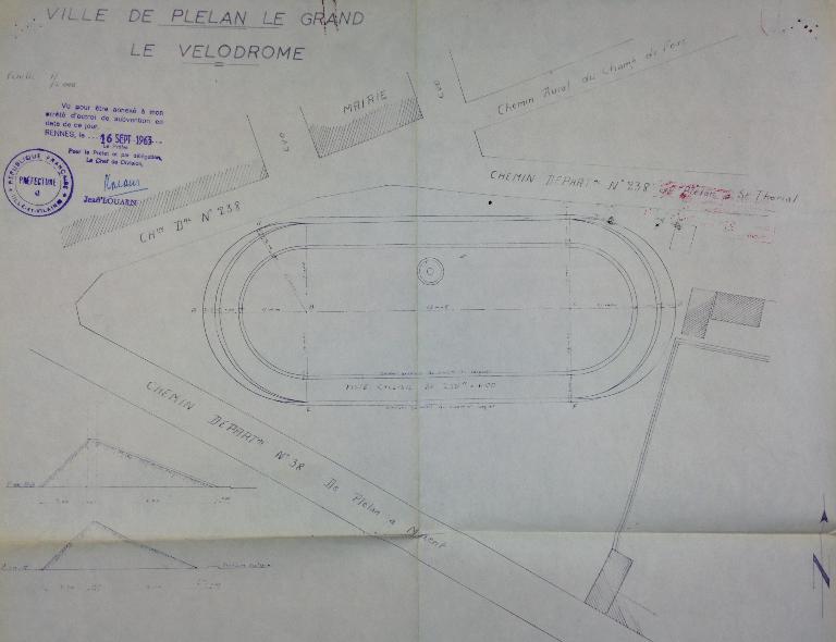 Archives départementales d'Ille-et-Vilaine 152 W 566 - Plélan-le-Grand, remise en état du vélodrome (1956-1970)
