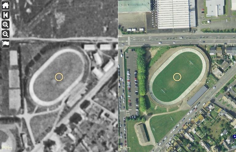 Vue aérienne comparée du site 1949 vs. 2012Immatriculation