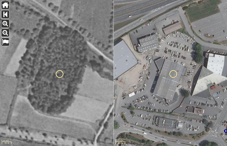 Vue aérienne comparée du site 1952 vs. 2012Immatriculation