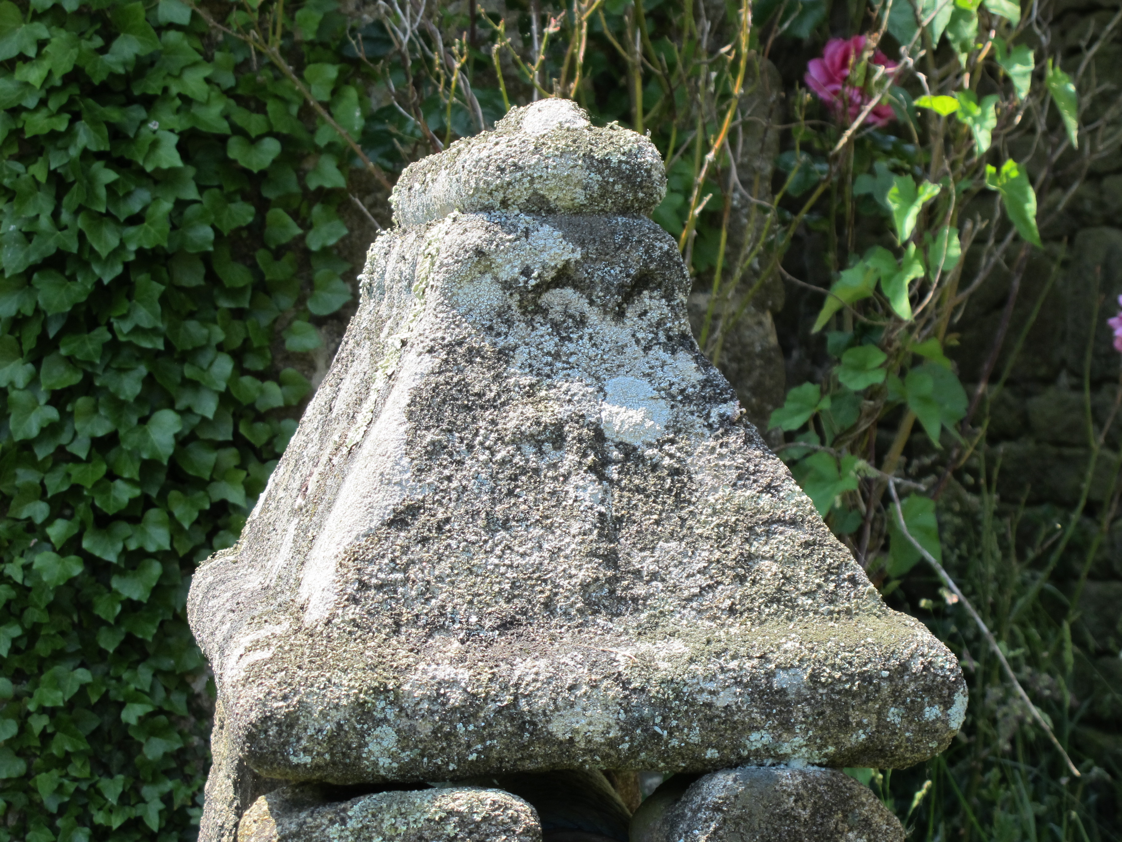 Ferme F parcelle 171, 17e et 18e siècle : puits, 18e siècle, orné d'une hache de tailleur de pierre (brêture) : détail de l'outil (2015)Immatriculation