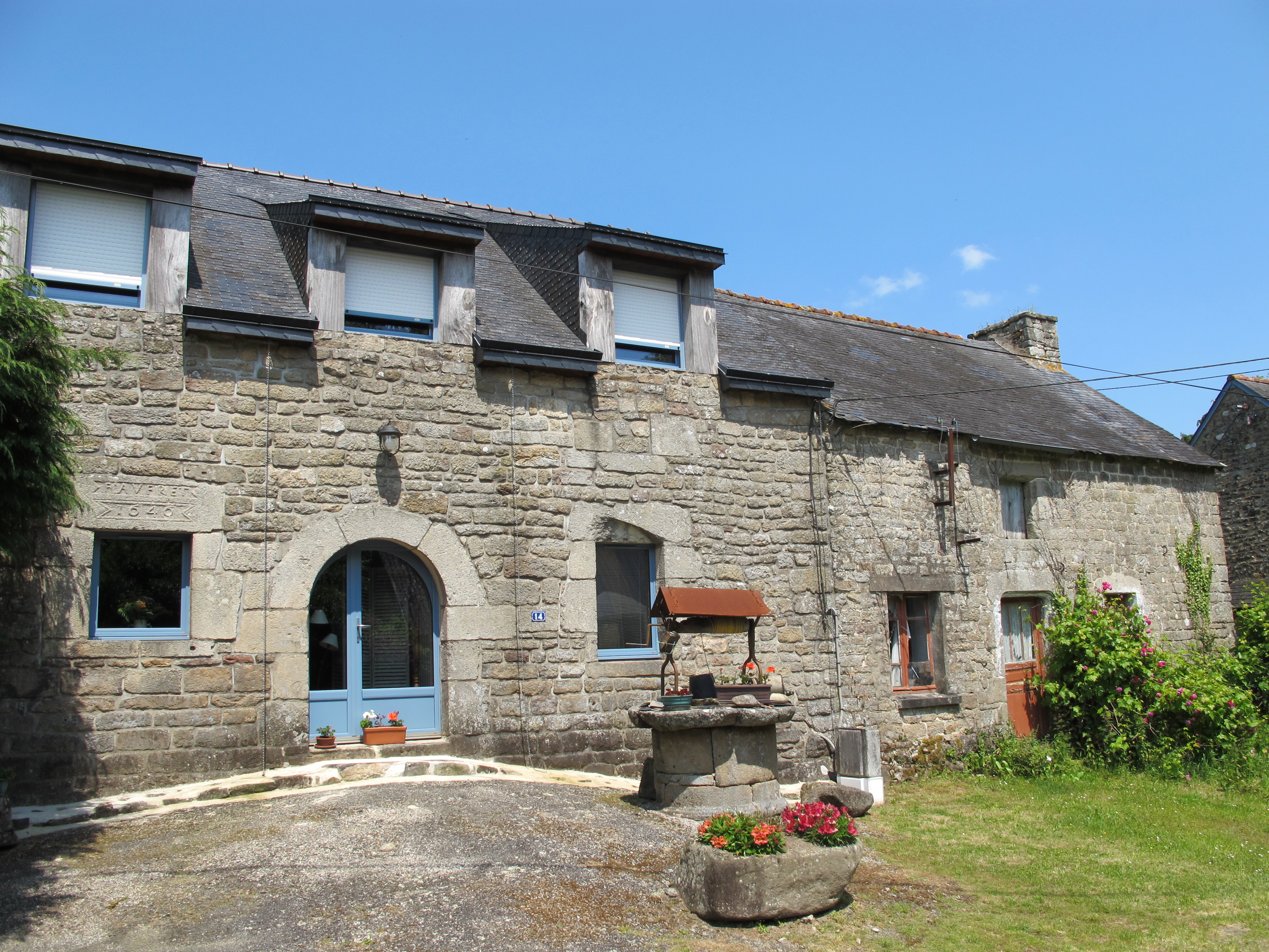 Maison datée par inscription R. AUFRET 1640, remaniée vers 2000, et puits, état en 2015Immatriculation