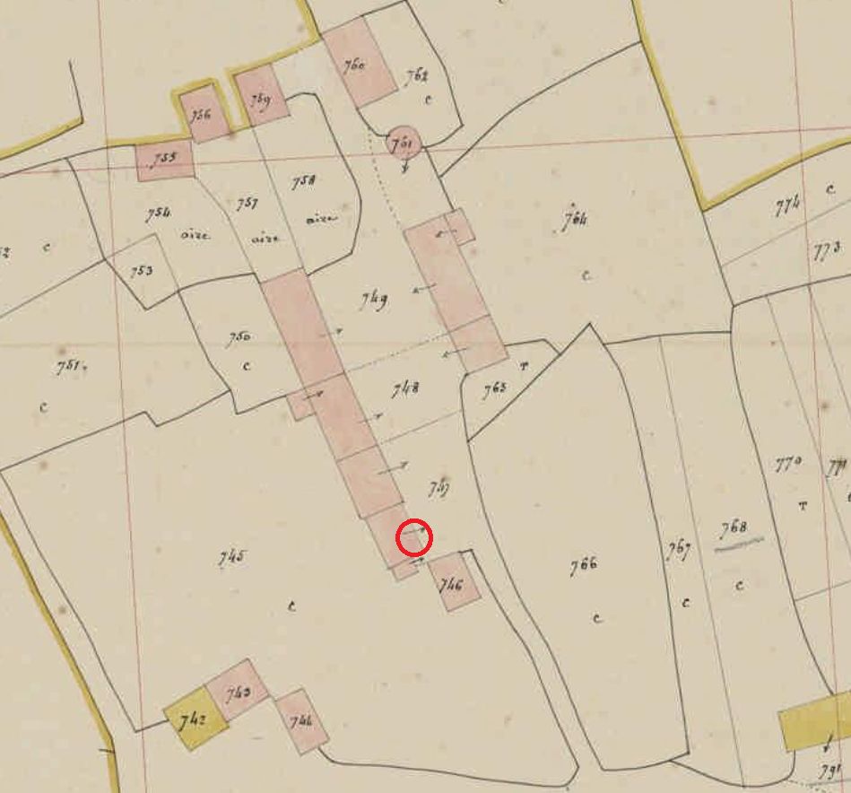 Emplacement du logis sur le plan cadastral de 1842, section G3 (AD Morbihan, 3P 158)Immatriculation
