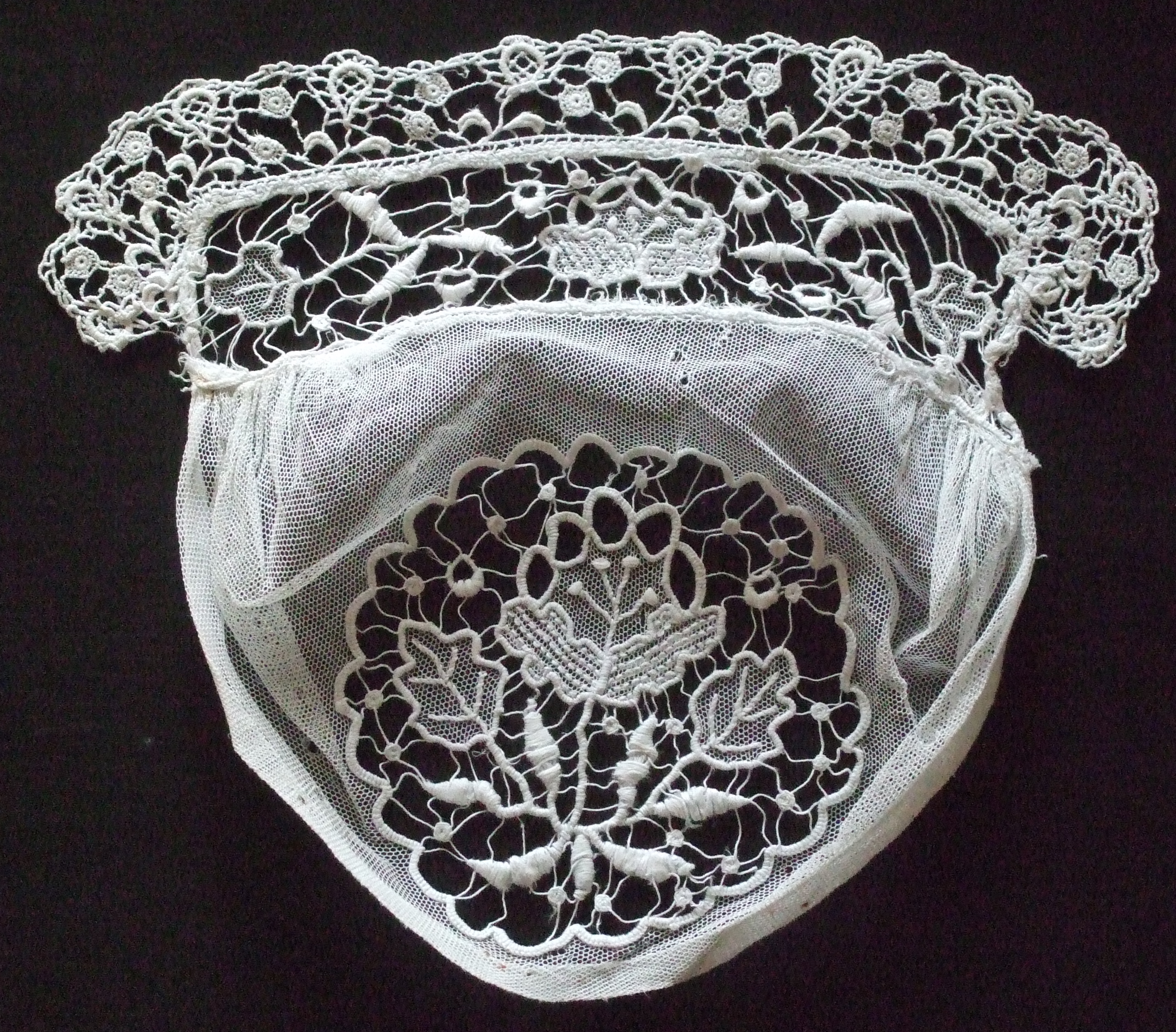 Coiffe en tulle brodé. Collection et photo de Michel RocherImmatriculation