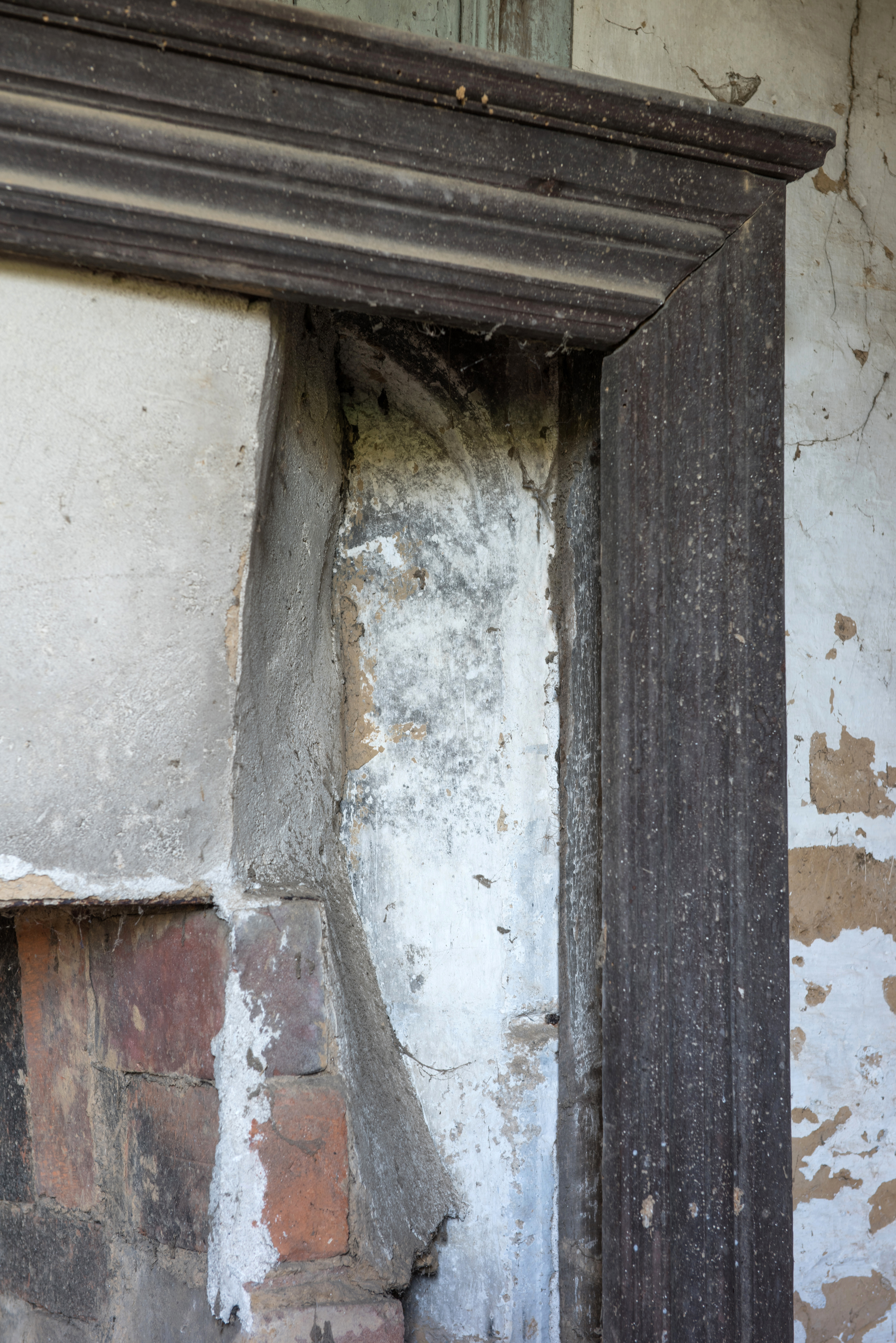 Vestiges du manoir d'origine. Appentis nord. Pièce à mi-niveau entre le rez-de-chaussée et l'étage. Détail de la cheminéeImmatriculation