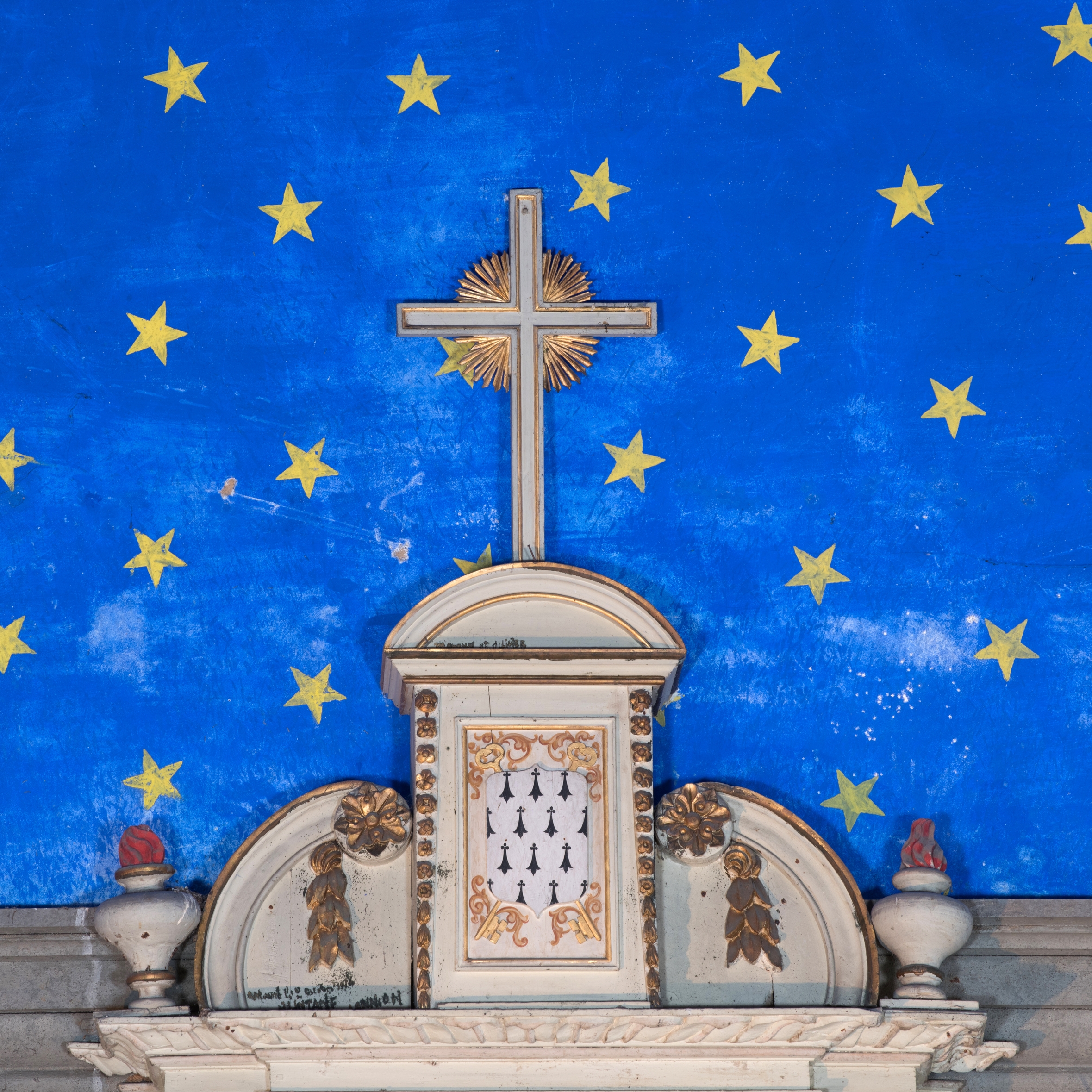 Grand retable du choeur provenant de Runan, bois polychrome, 1727 (classé M.H.). Détail de la niche supérieureImmatriculation
