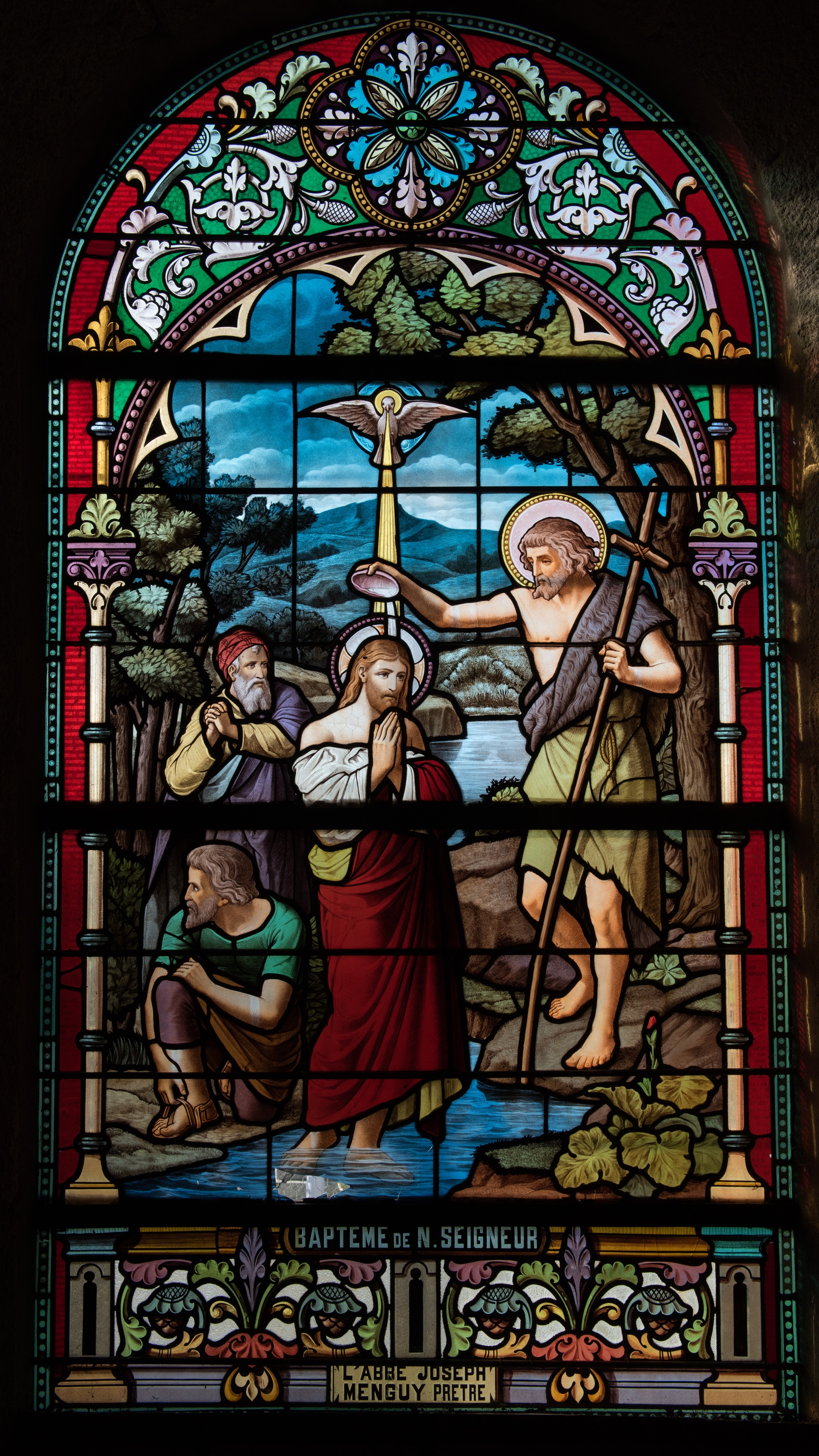 Verrière. Baptême du Christ. Bessac, maître-verrier (Grenoble), 1913-1914. Vue généraleImmatriculation