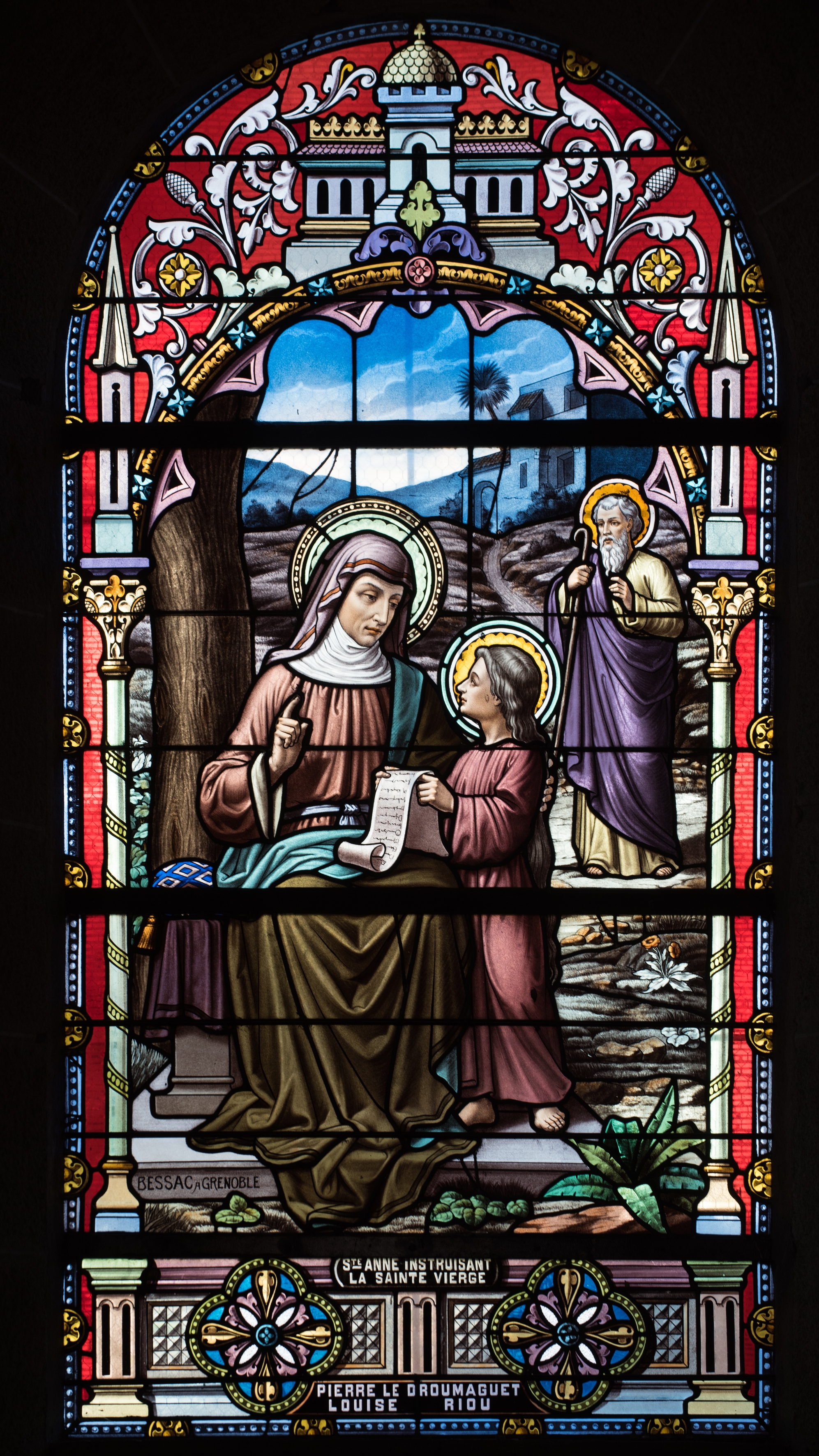 Verrière. sainte Anne instruisant la Vierge. Bessac, maître-verrier (Grenoble), 1913-1914. Vue généraleImmatriculation