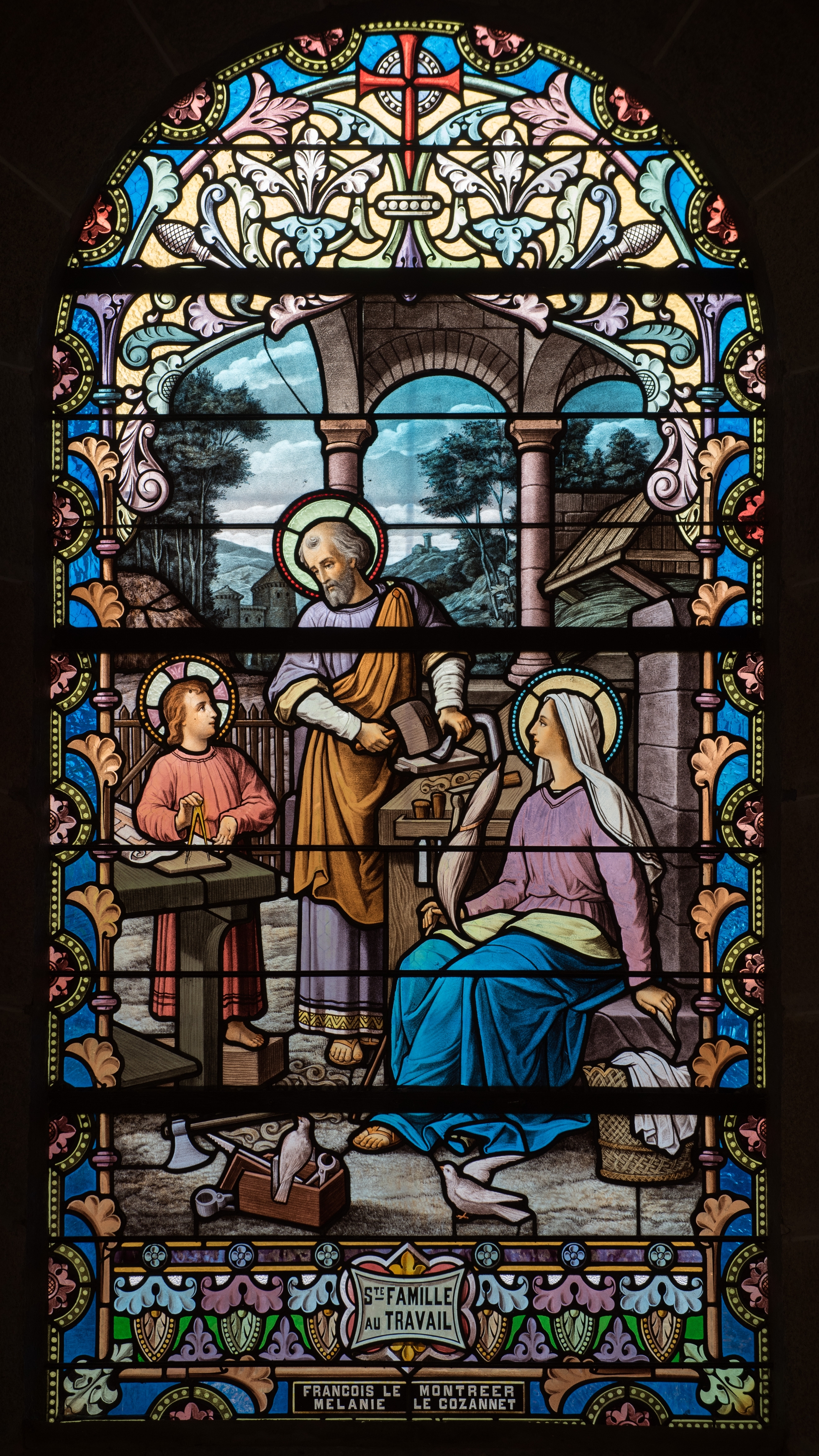 Verrière. La Sainte Famille au travail. Bessac, maître-verrier (Grenoble), 1913-1914. Vue généraleImmatriculation