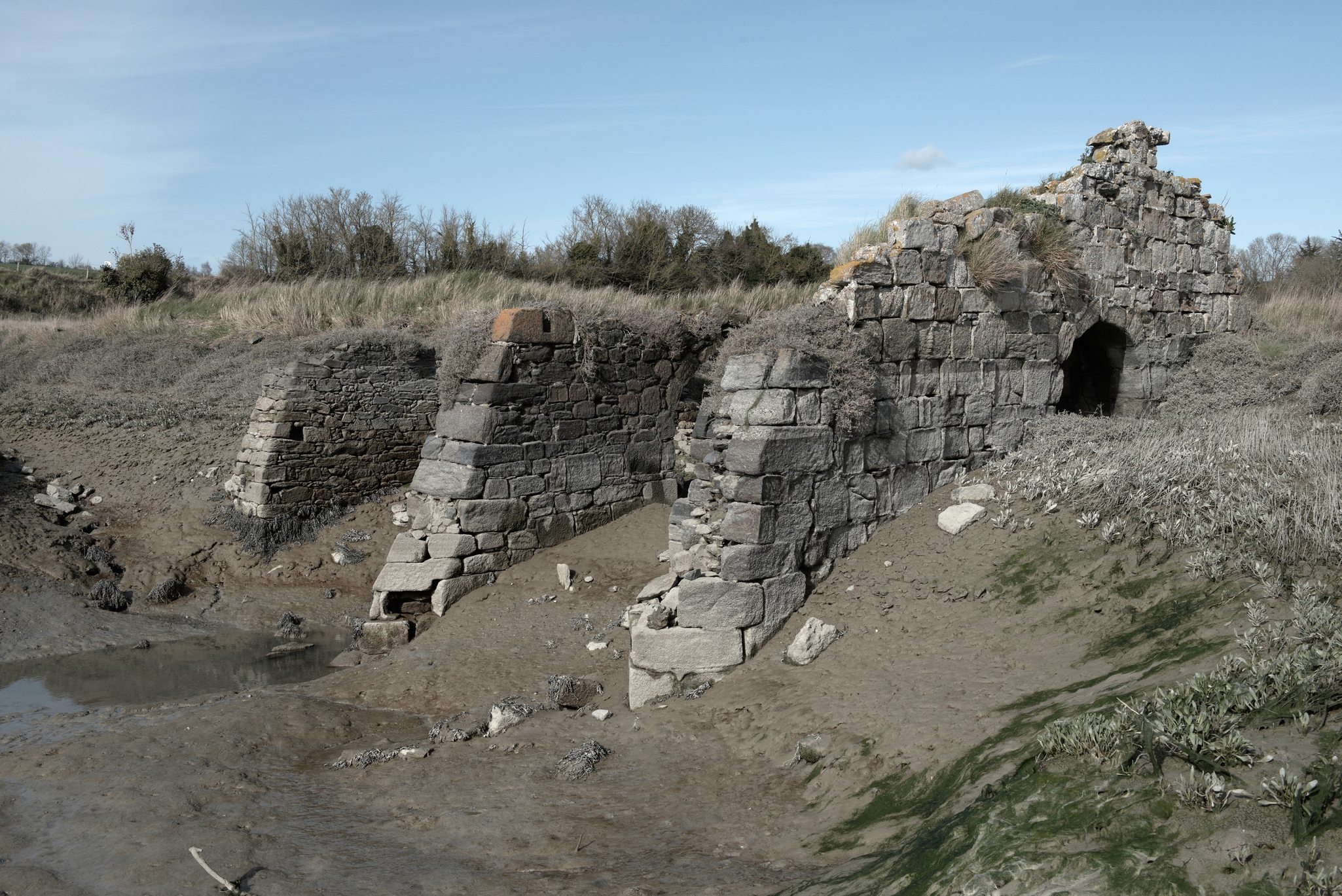 Moulin de mer : vestiges des soubassements à marée basseImmatriculation