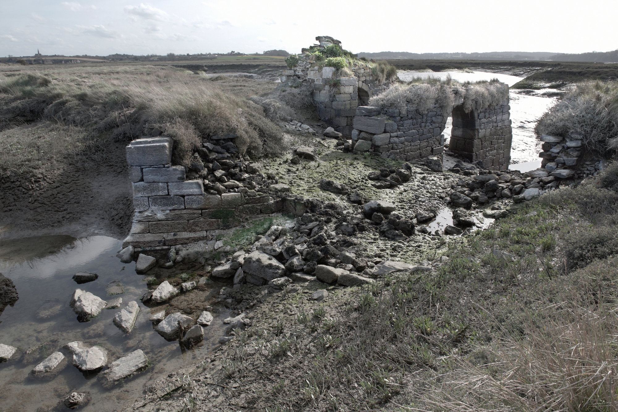 Moulin de mer : vestiges des soubassements à marée basseImmatriculation