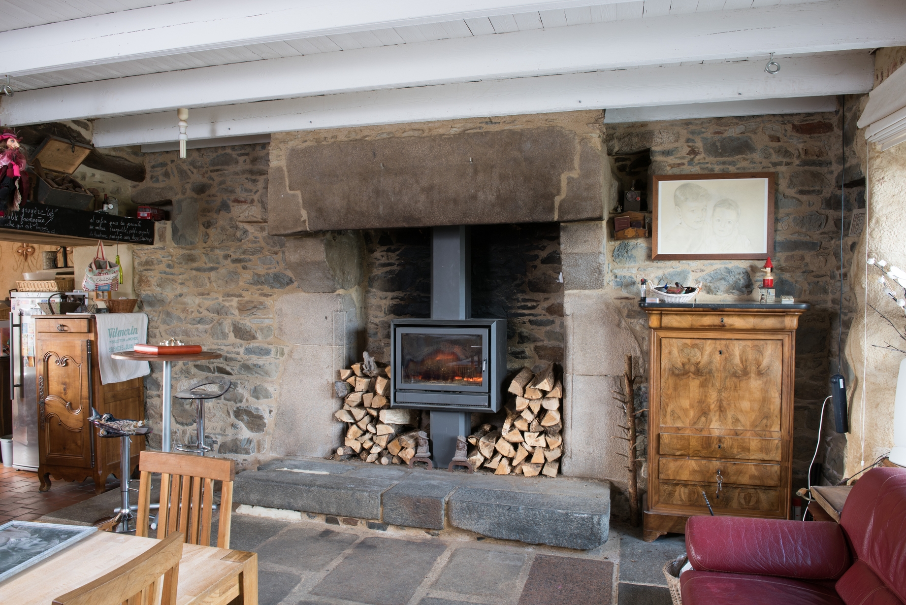 7 rue du lavoir. Ancienne auberge, 1620. Cheminée de la salle. Vue généraleImmatriculation