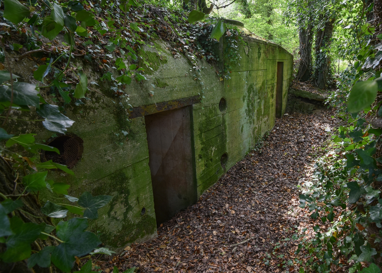 Vue de la façade principale du blockhaus, la route du bocageImmatriculation
