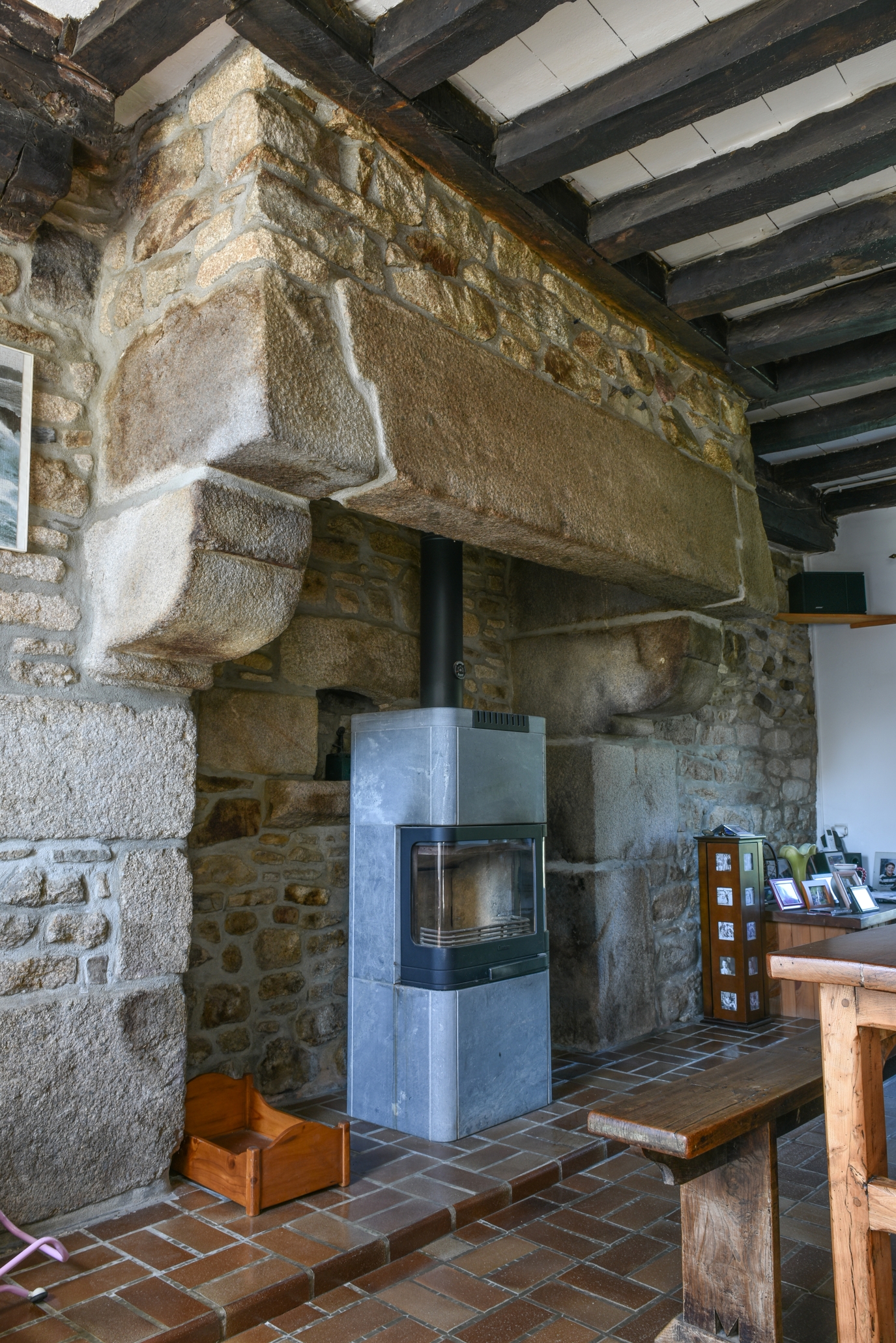Ancien manoir du Donan (Camlez) - Rez-de-chaussée. Salle. Détail de la cheminée.Immatriculation