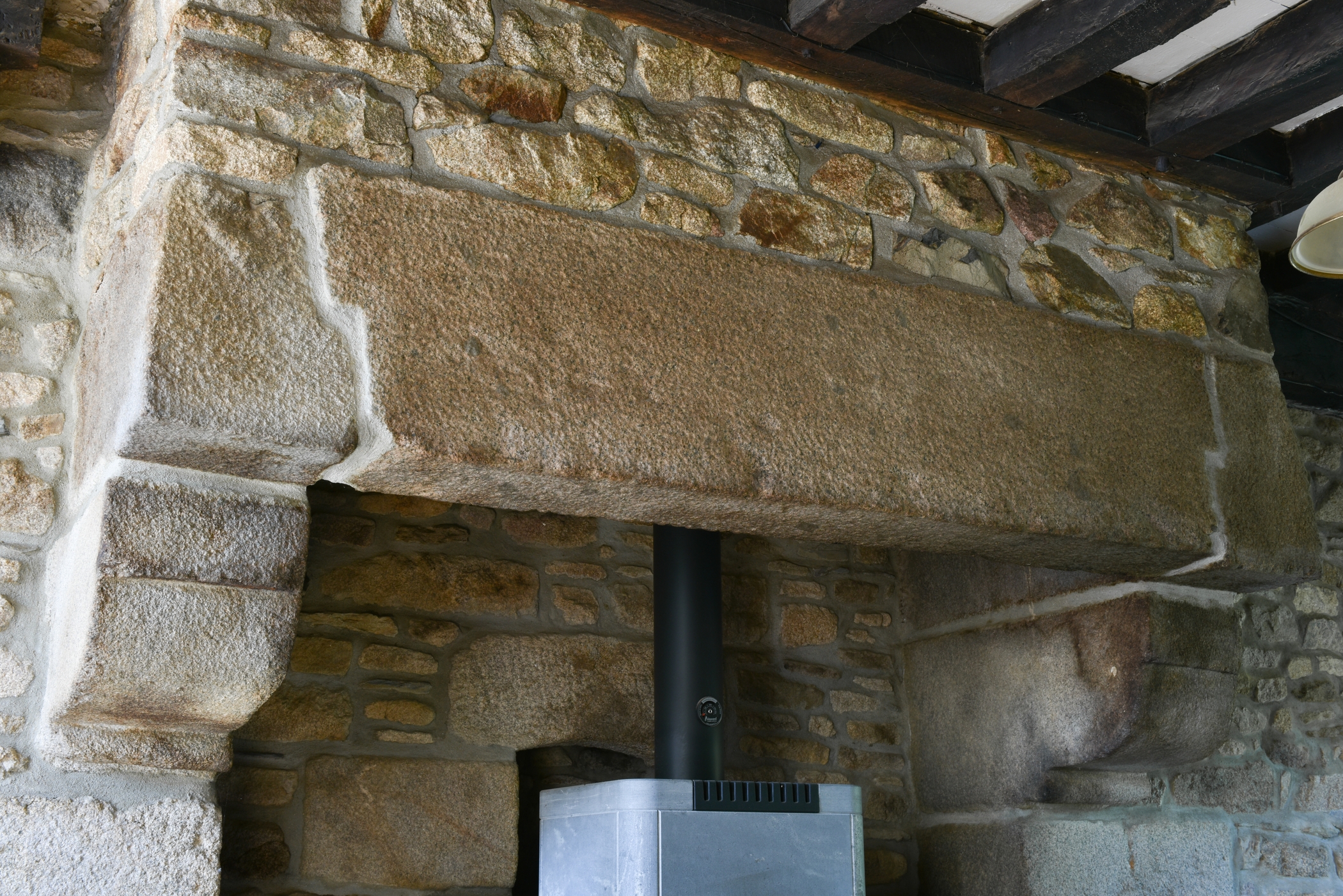 Ancien manoir du Donan (Camlez) - Rez-de-chaussée. Détail du linteau de la cheminée.Immatriculation
