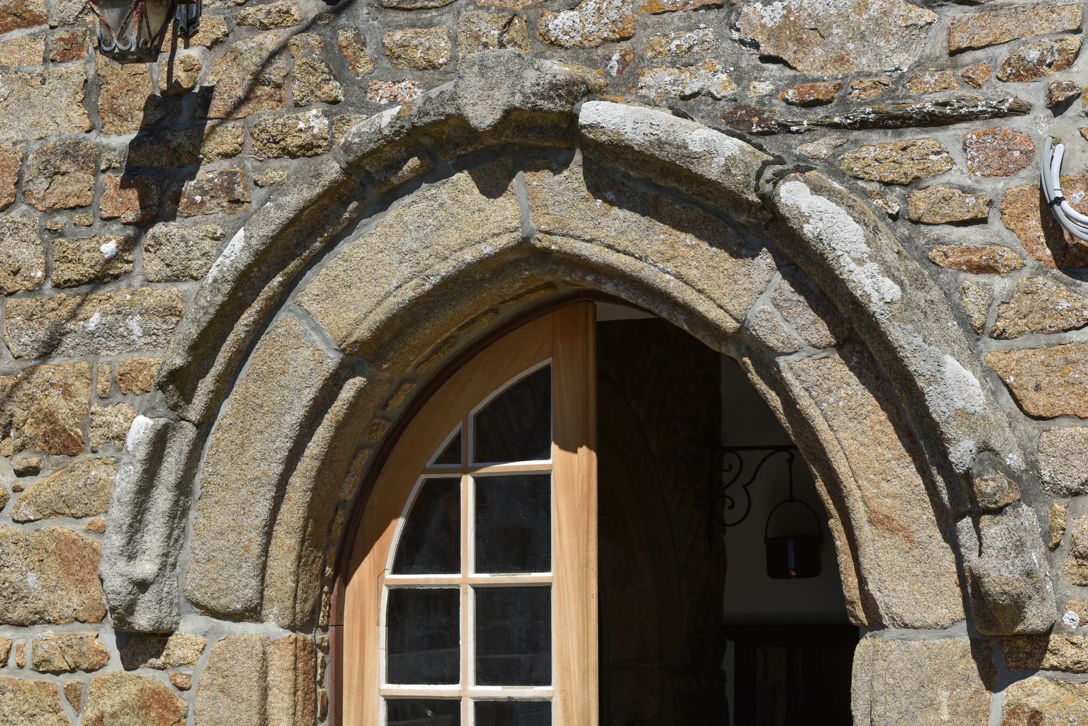 Ancien manoir du Donan (Camlez) - Logis, porte d'entrée. Détail de l'archivolte.Immatriculation