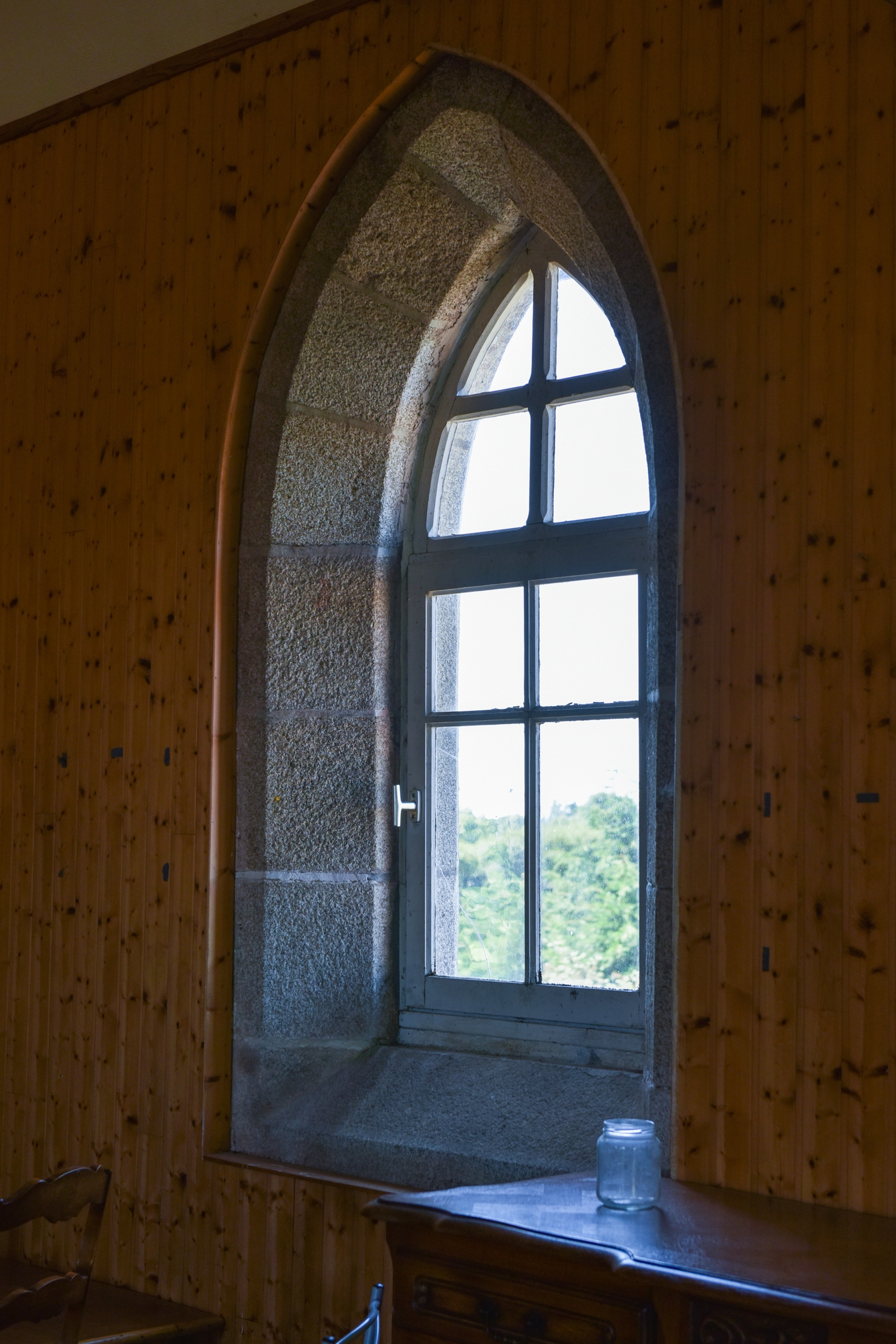 Camlez, le bourg : école des filles, chapelle, détail d'une fenêtre, vue intérieureImmatriculation