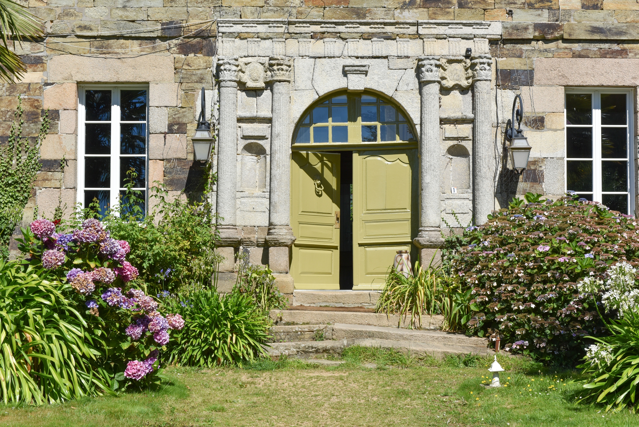 Le logis de Trostang (Camlez) - Façade sud. Détail du portail monumental.Immatriculation