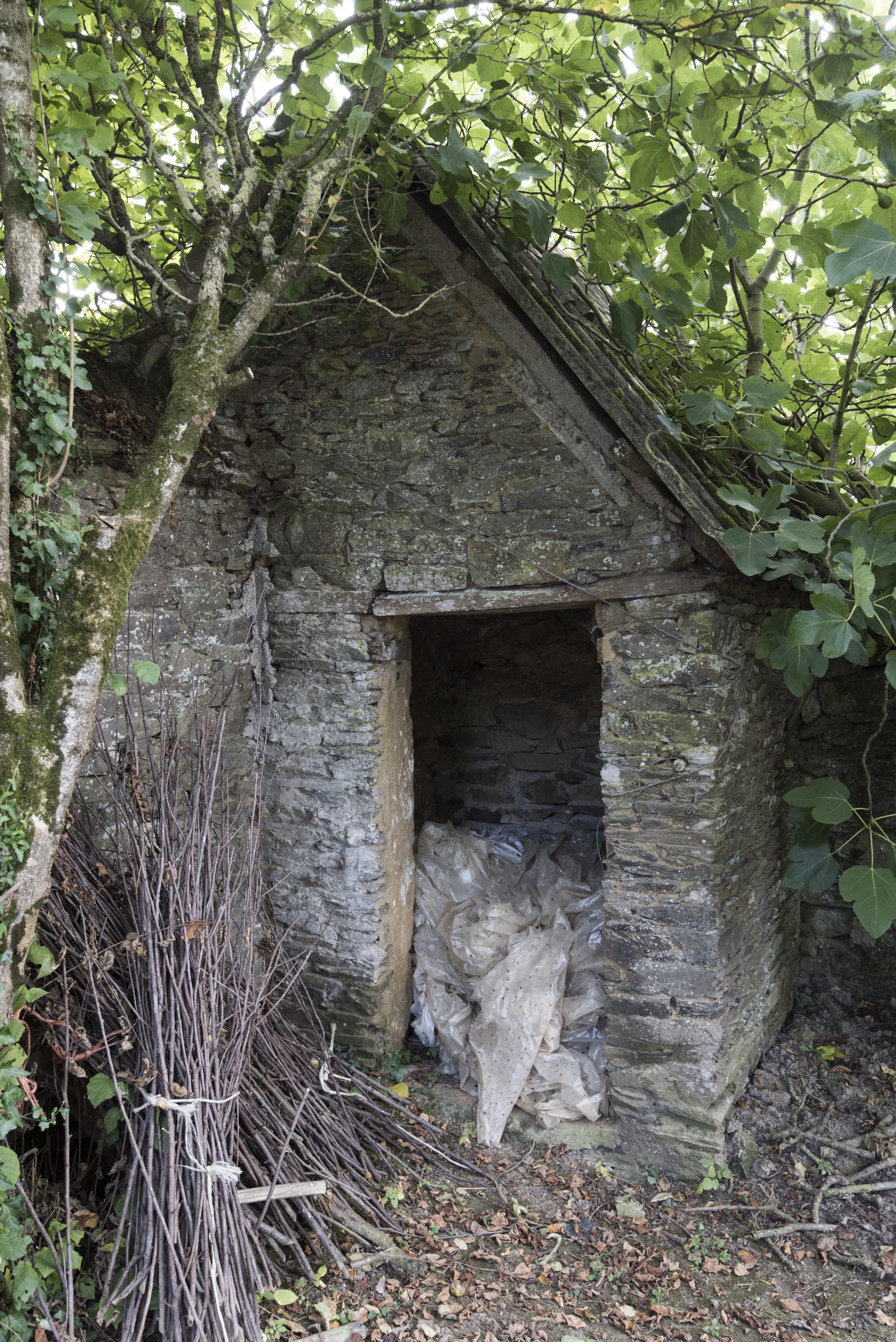 Potager enclos de murs. Détail de l'abri de jardinImmatriculation