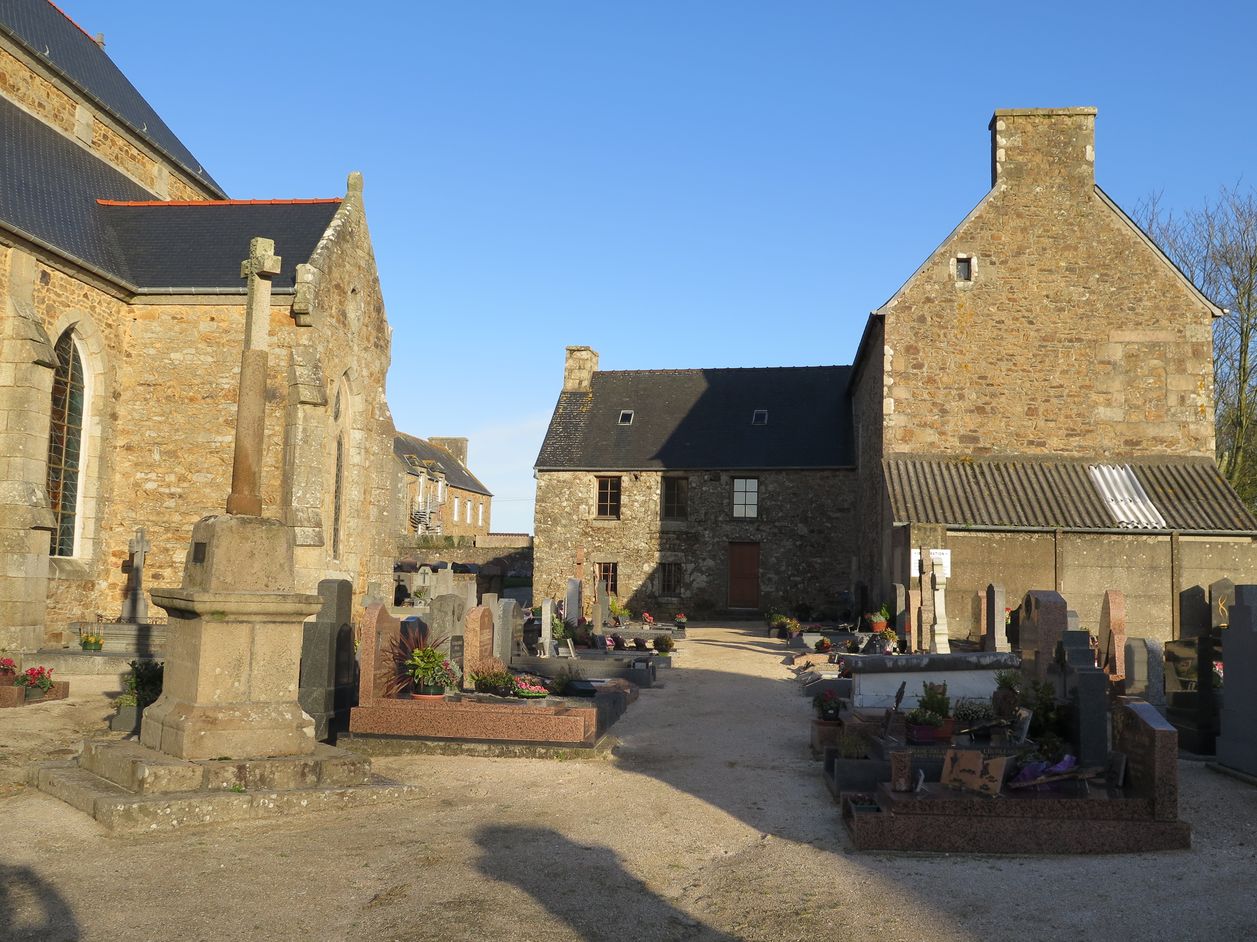 Kermaria-Sulard, le bourg, 1 rue de l'église : presbytère, vue générale depuis l'ouest et le cimetièreImmatriculation