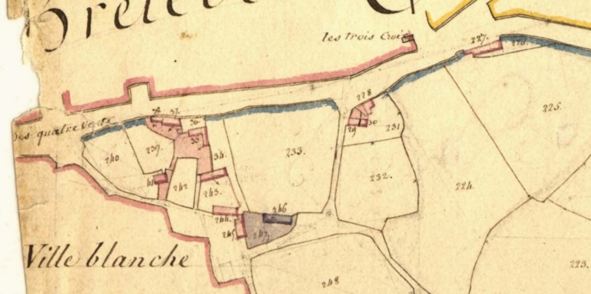 Extrait du cadastre ancien de la commune de Rospez, 1826 : La Ville BlancheImmatriculation