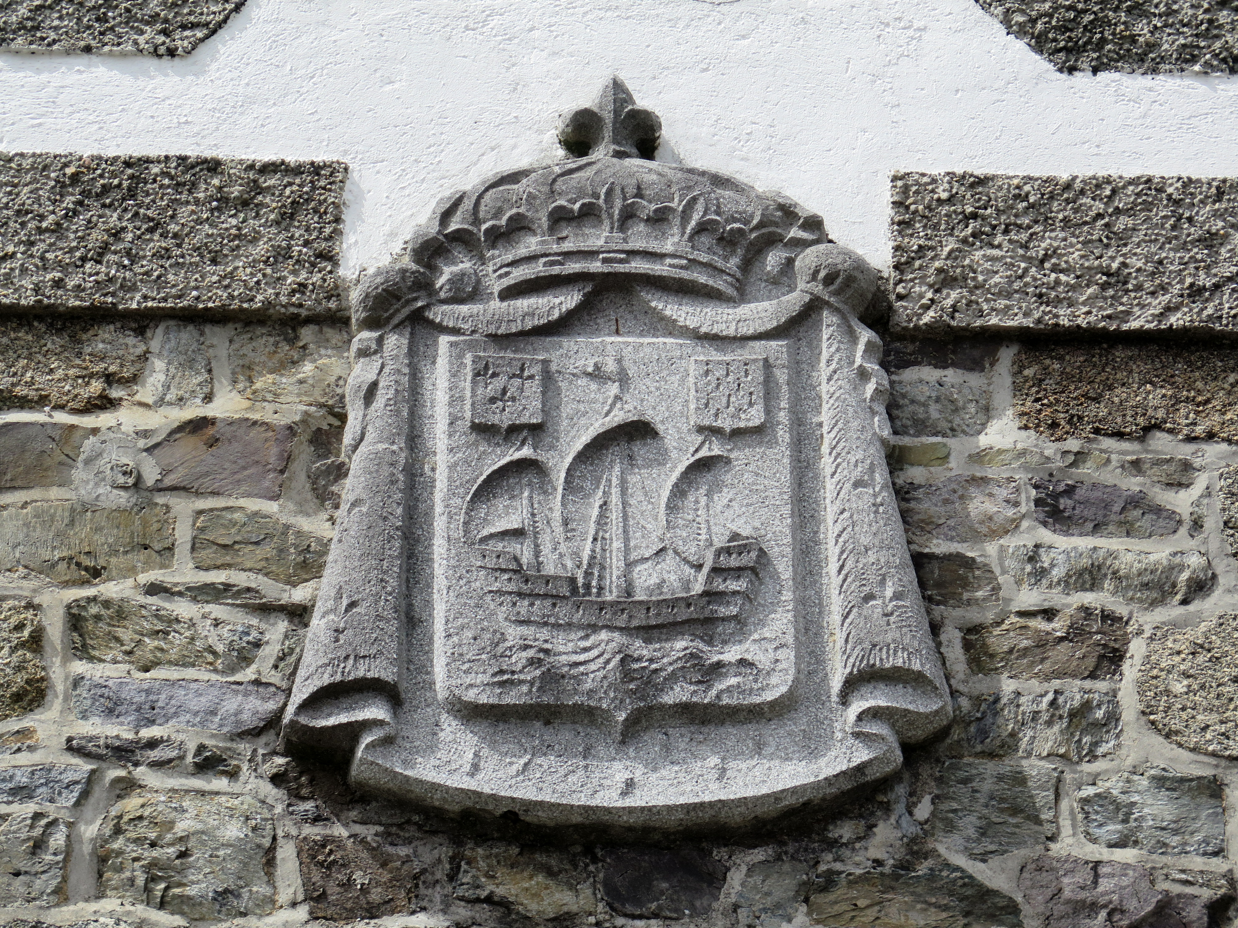 Tréguier, rue Pasteur : immeuble à logements, détail de l'élévation orientée vers le sud-est, armoiries de la ville de TréguierImmatriculation