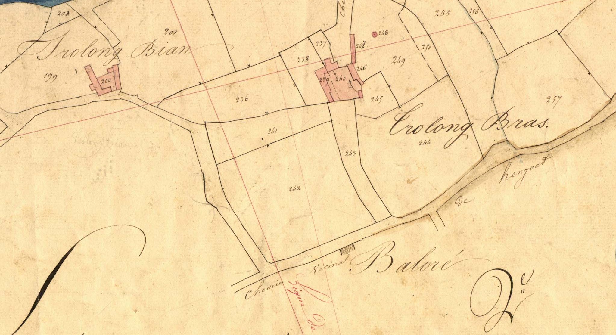 Le manoir de Trolong en 1835. Extrait du cadastre ancien, section A1 (AD 22, série 3P 078)Immatriculation