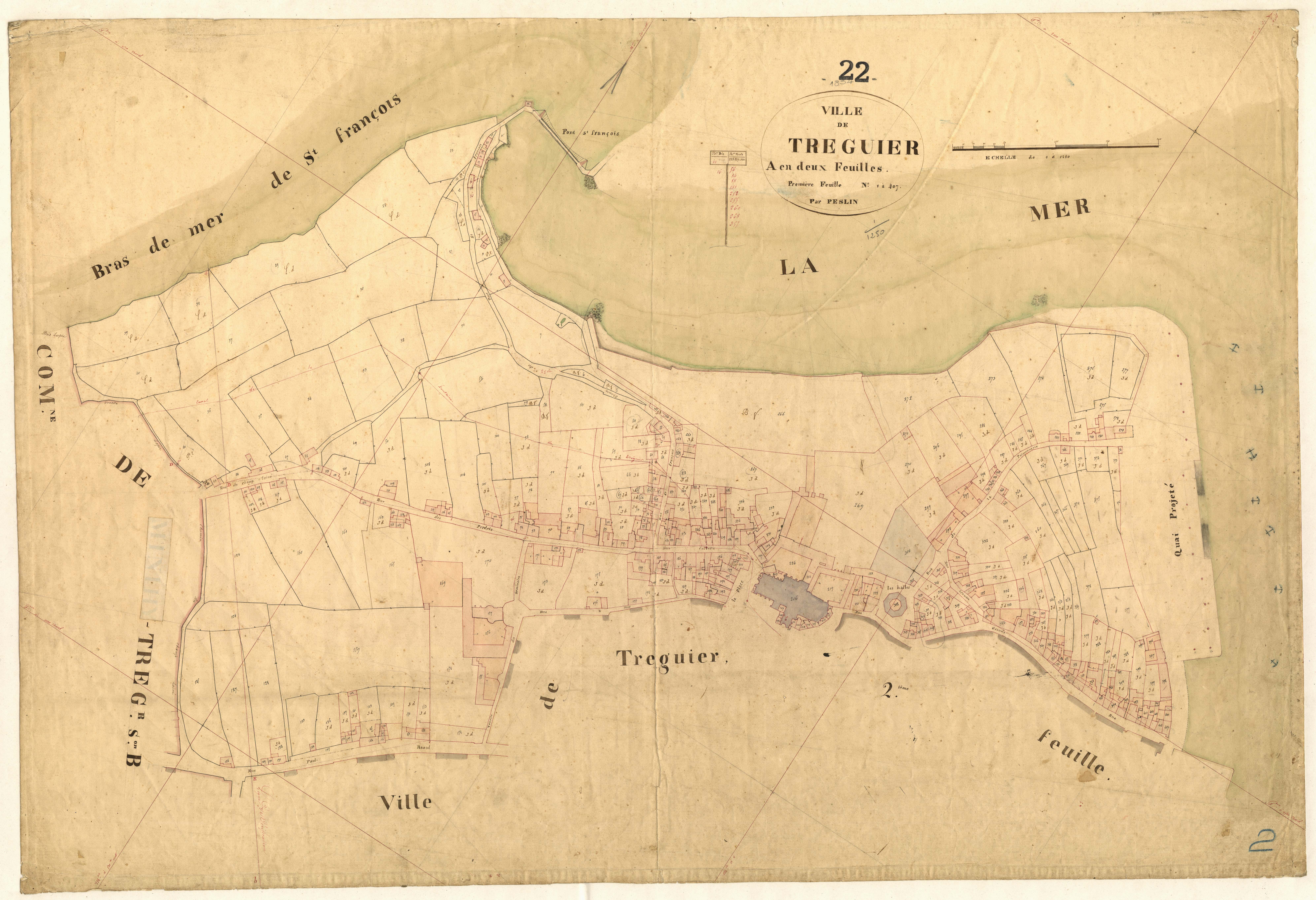 La ville de Tréguier en 1834. Section A1 du cadastre ancien (Archives départementales des Côtes-d'Armor, série 3P 362/2)Immatriculation