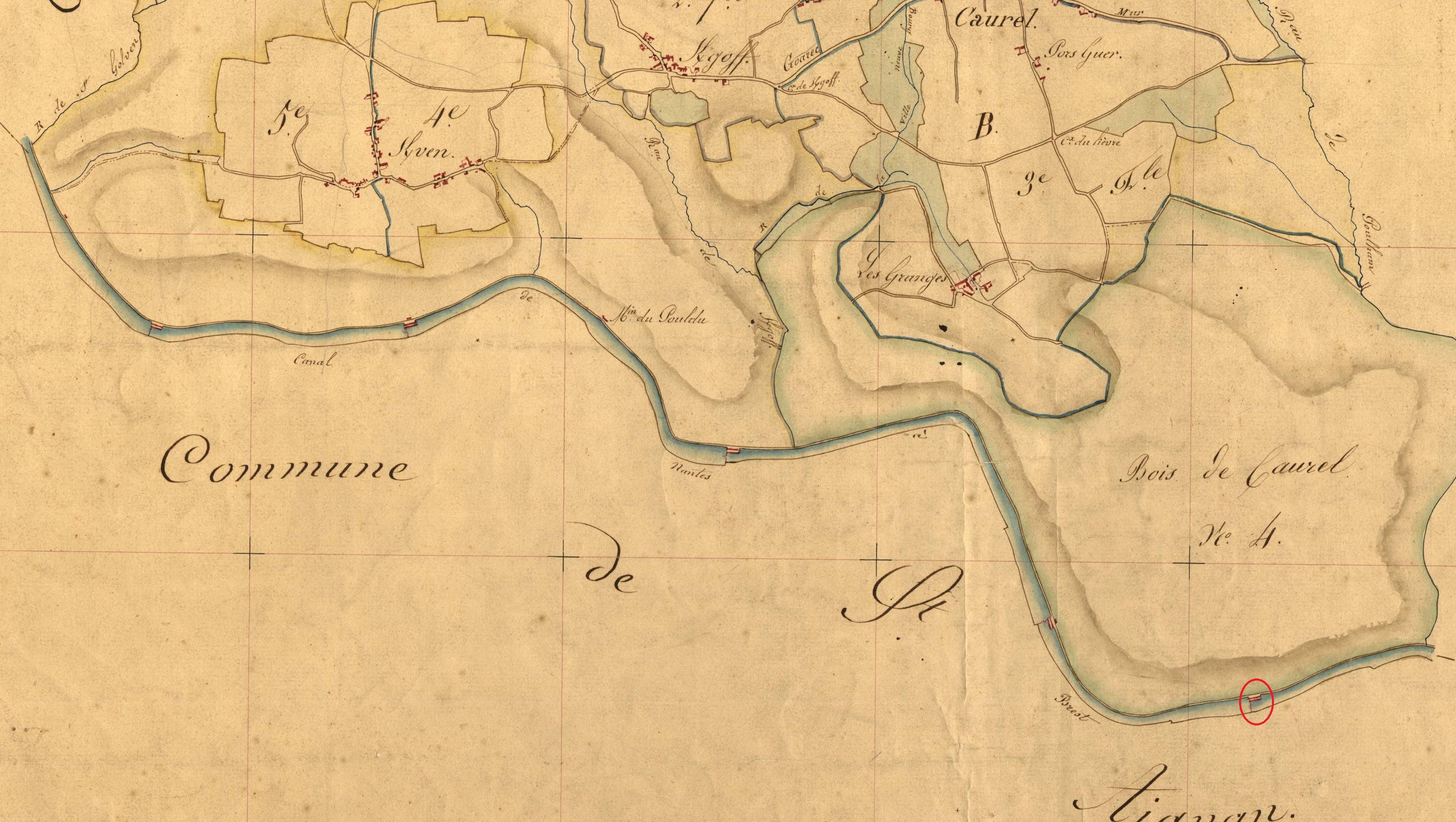 Cadastre de Caurel, tableau d'assemblage, 1840 (extrait)Immatriculation