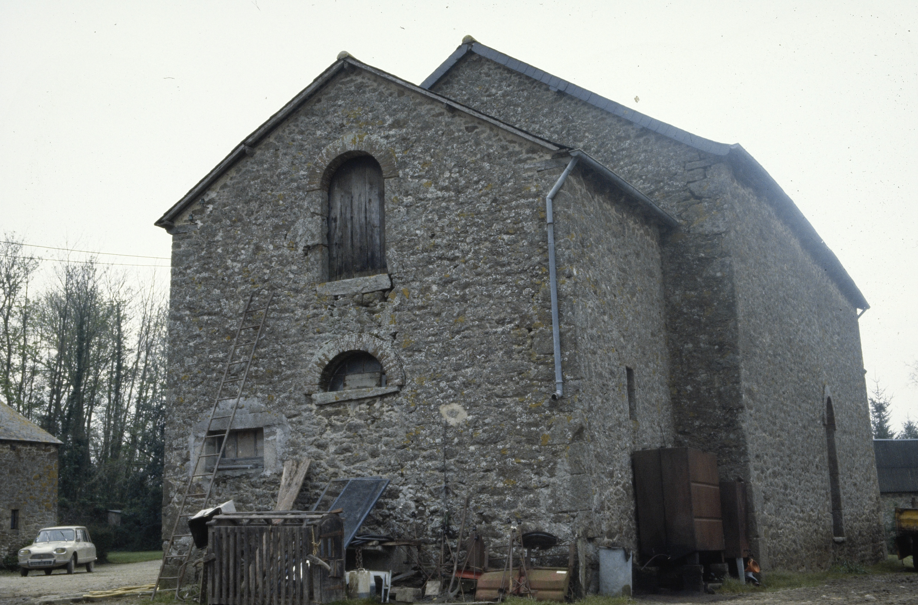 Pignon de l'écurie et vacherie de la ferme de la Porte au chateau de Largentaye (état en 1993)Immatriculation