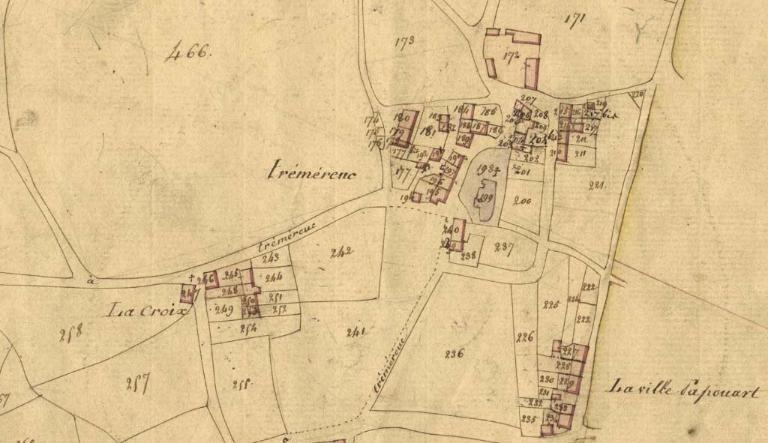 Cadastre ancien, détails du bourg, 1927.Immatriculation