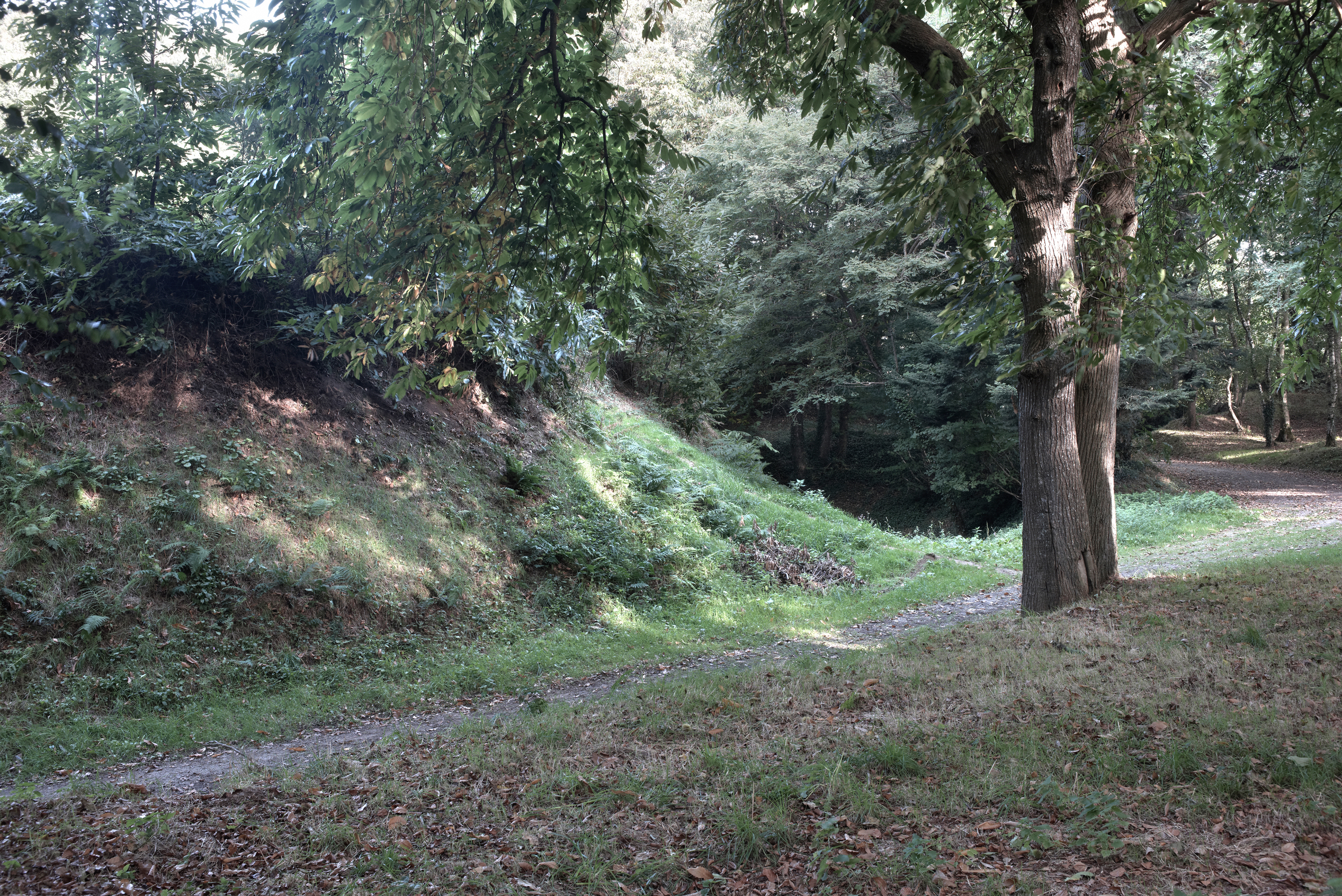 Vue de la motte et du chemin d'accès vers le nord, état en 2016Immatriculation