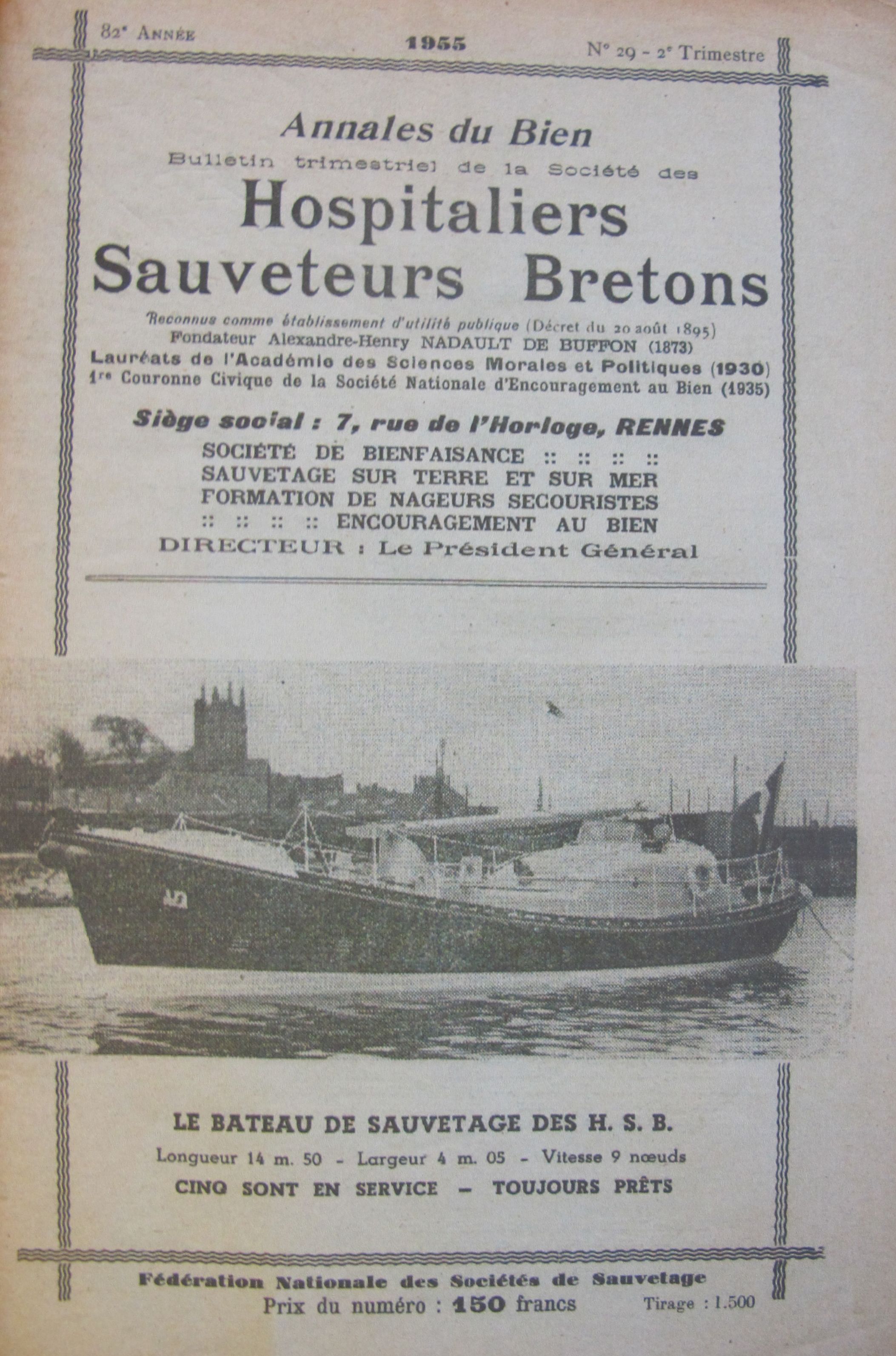 Annales du Bien, bulletin trismestriel de la société des Hospitaliers Sauveteurs Bretons, n°29, 1955 : "Yvon Salaün"Immatriculation