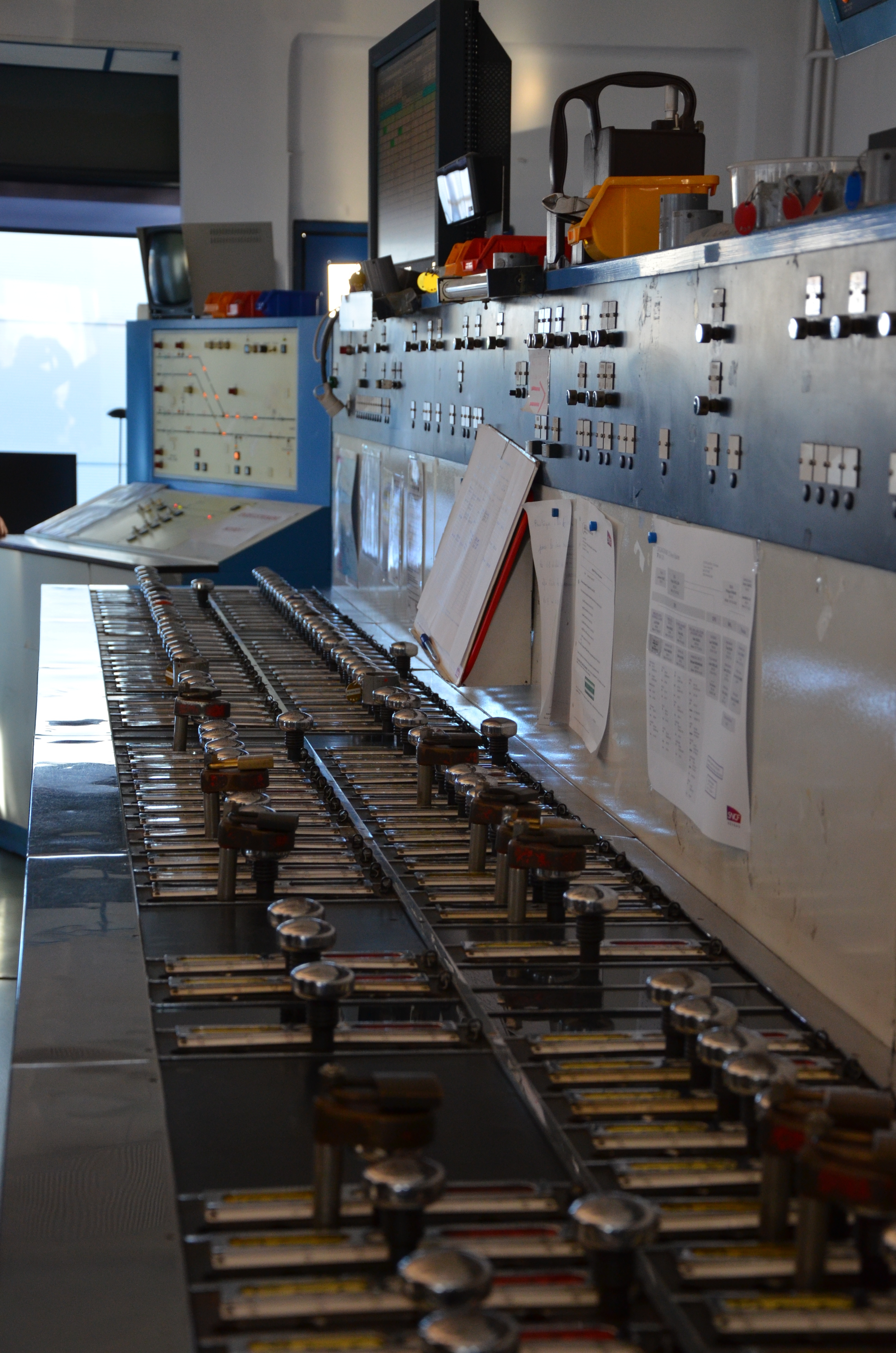 Vue en détail du combinateur Mors, au fond le poste de Port-CahoursImmatriculation