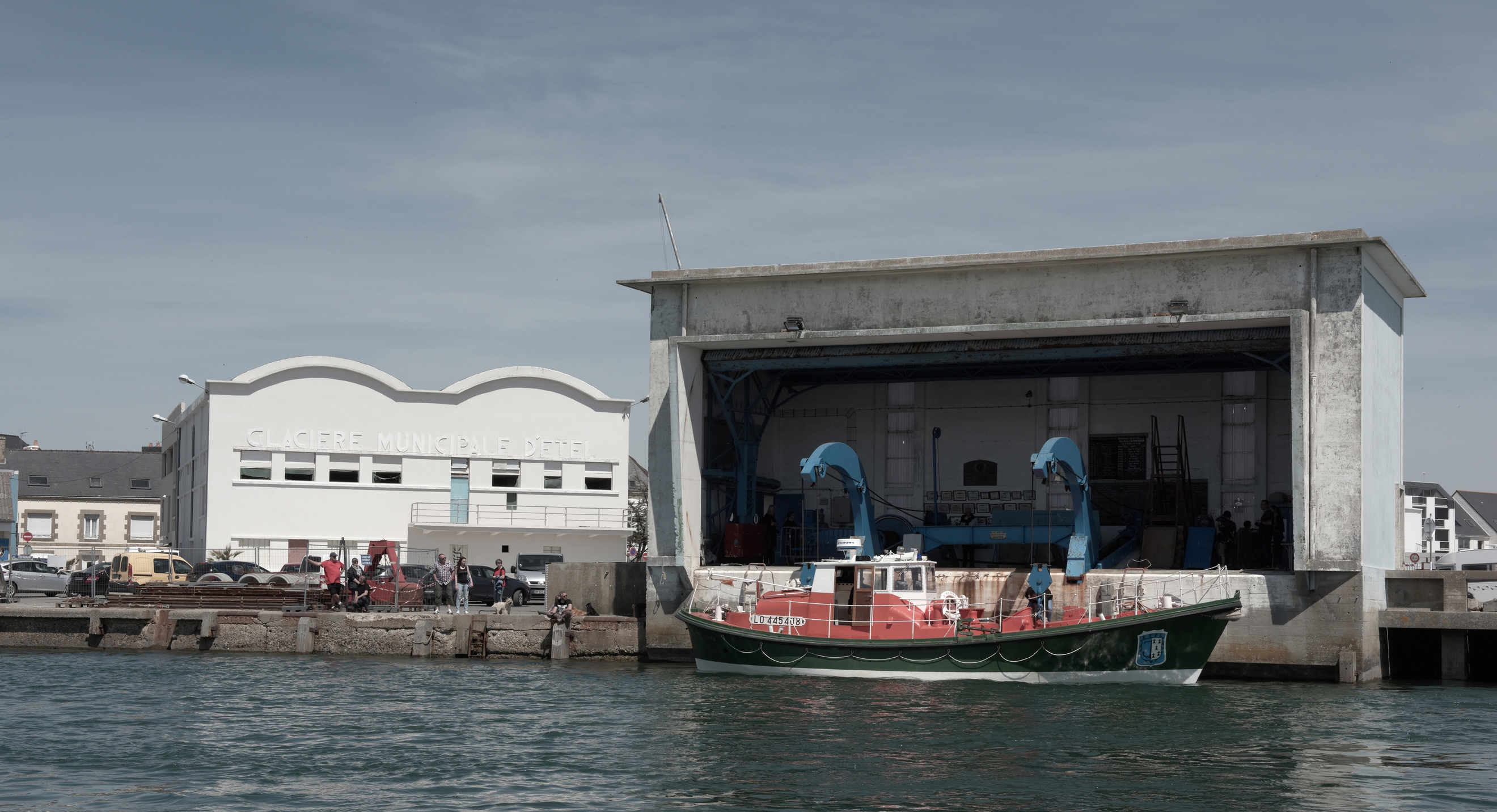 Vue de la mise à l'eau du canot de sauvetage depuis la Ria d'EtelImmatriculation