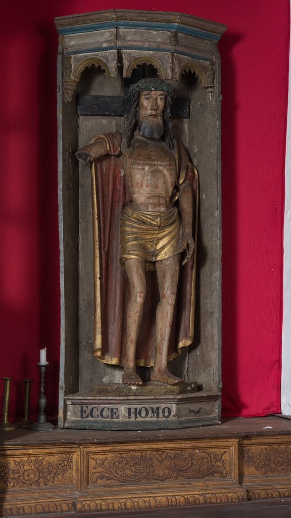 Corps de logis. Niche et statue de Jésus présenté au peuple (Ecce Homo), bois polychrome, 16e siècle (inscrit au titre objet)Immatriculation