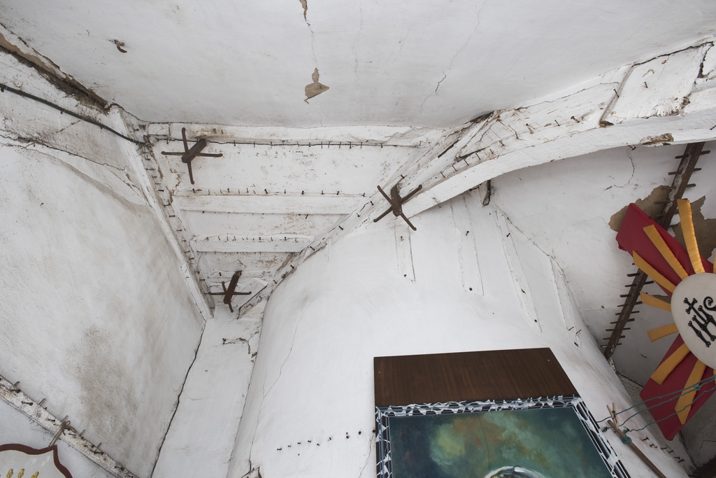 Grand corps de logis. Petite pièce attenante à l'escalier en vis desservant le grenier. Détail de fixations et de clous plantés dans les poutresImmatriculation