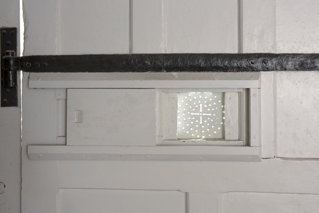 Porte de la galerie de jonction de 1935. Détail du judas au revers de la porteImmatriculation