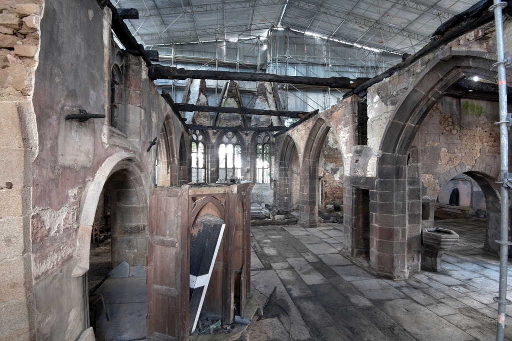 Trémel, le bourg : église paroissiale Notre-Dame, vue intérieure (après l'incendie du 21 juin 2016)Immatriculation